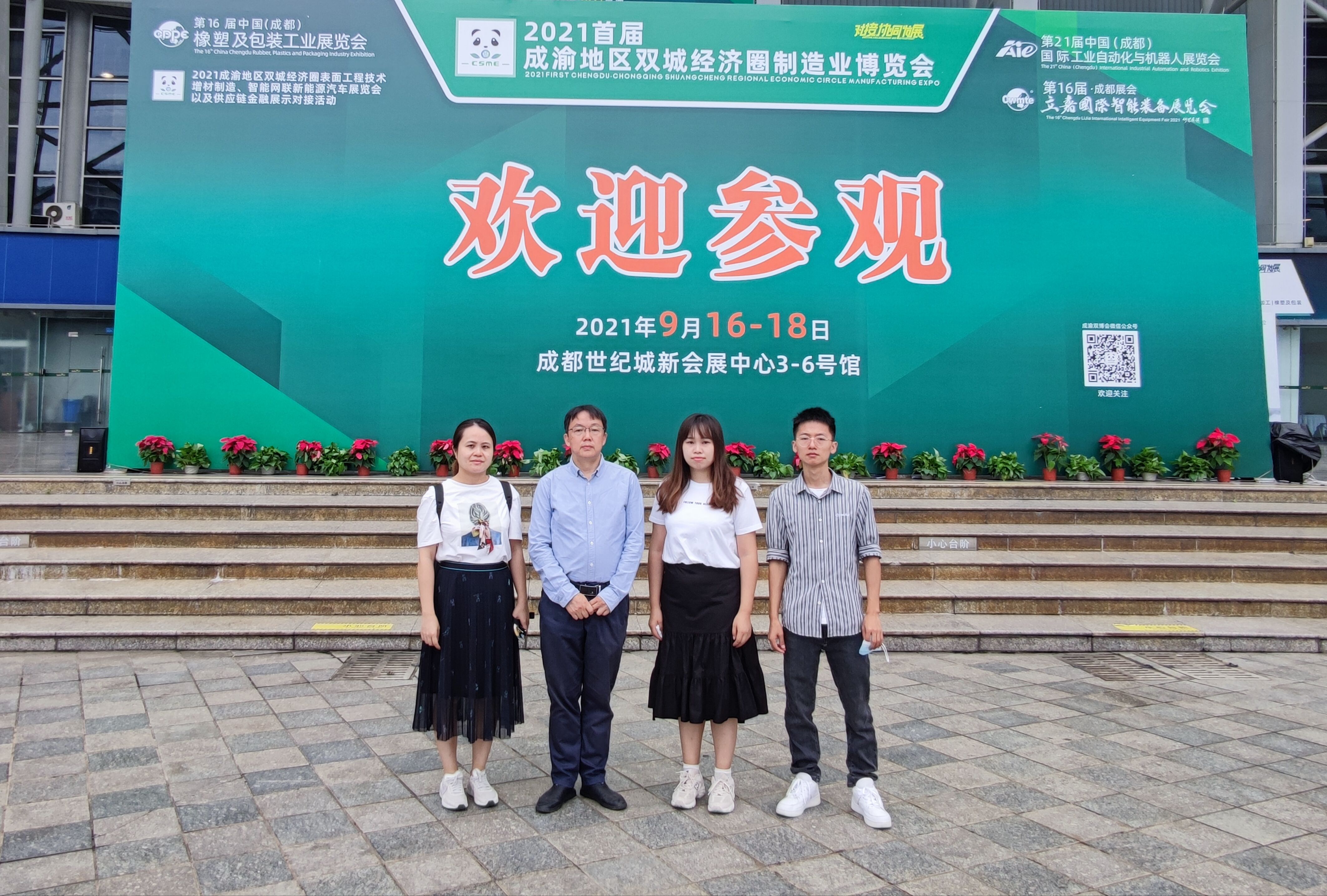 2021年9月16日-9月18日,2021首届成渝地区双城经济圈制造业博览会在成都世纪城新国际会展中心举办,9月16日-17日,机械工程学院院长任小鸿带领专任教师梅静、吴胜、何媛媛一行四人参观了此次博览会。