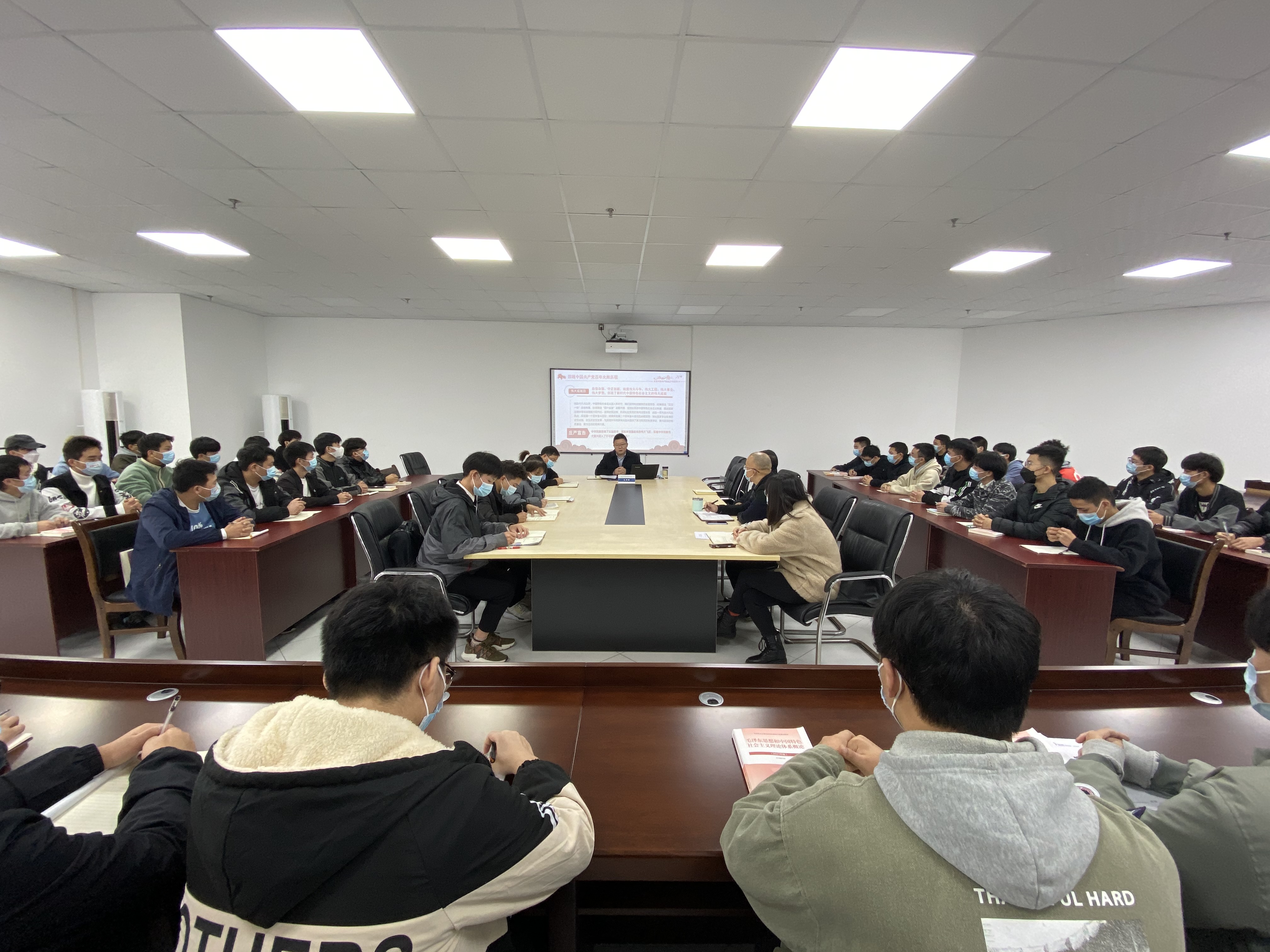 11月9日下午,学校院长文申柳在综合办公楼113会议室为所联系的机械工程学院焊接2032班全体同学作讲座,专题宣讲习近平总书记“七一”重要讲话精神。