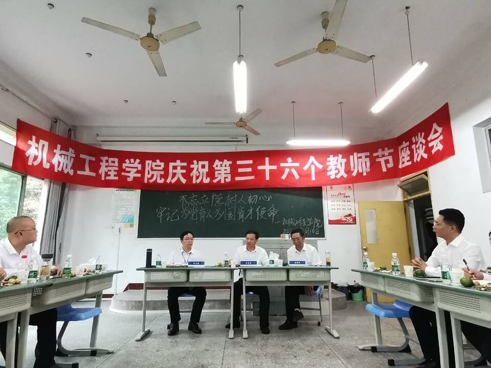 2020年9月10日,在第三十六个教师节来临之际,机械工程学院在综合楼A区407召开教师座谈会,会议以“不忘立德树人初心,牢记为党育人、为国育才使命”为主题。学校党委书记刘志勇参加了此次座谈会,座谈会由机械工程学院党总支书记、院长高朝祥主持。