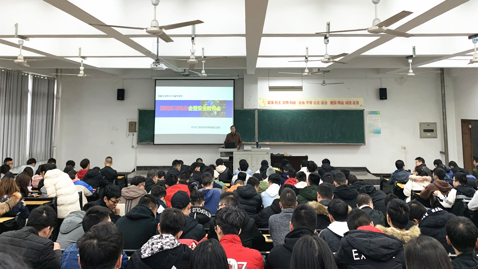 为加强学生顶岗实习管理,确保顶岗实习工作顺利进行。11月27日,机械工程系在实A308先后召开了两场顶岗实习动员及安全教育大会,机械工程系领导、各专业指导老师、辅导员和2017级全体学生参加了此次大会,会议由机械工程系任小鸿副主任主讲。