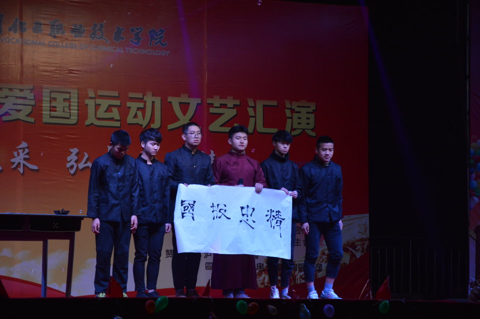 为纪念“一二·九”运动八十二周年,传承“一二·九”运动精神,激发学生爱国情怀。2017年12月17日晚,四川化工职业技术学院机械工程系、自动化工程系、信息工程系在小舞台联合举办了以“挥洒青春风采,弘扬爱国精神”为主题的文艺晚会。学生处张波副处长、机械工程系高朝祥主任、自动化工程系陈昌涛主任、信息工程系李宏主任等领导出席了此次晚会。
