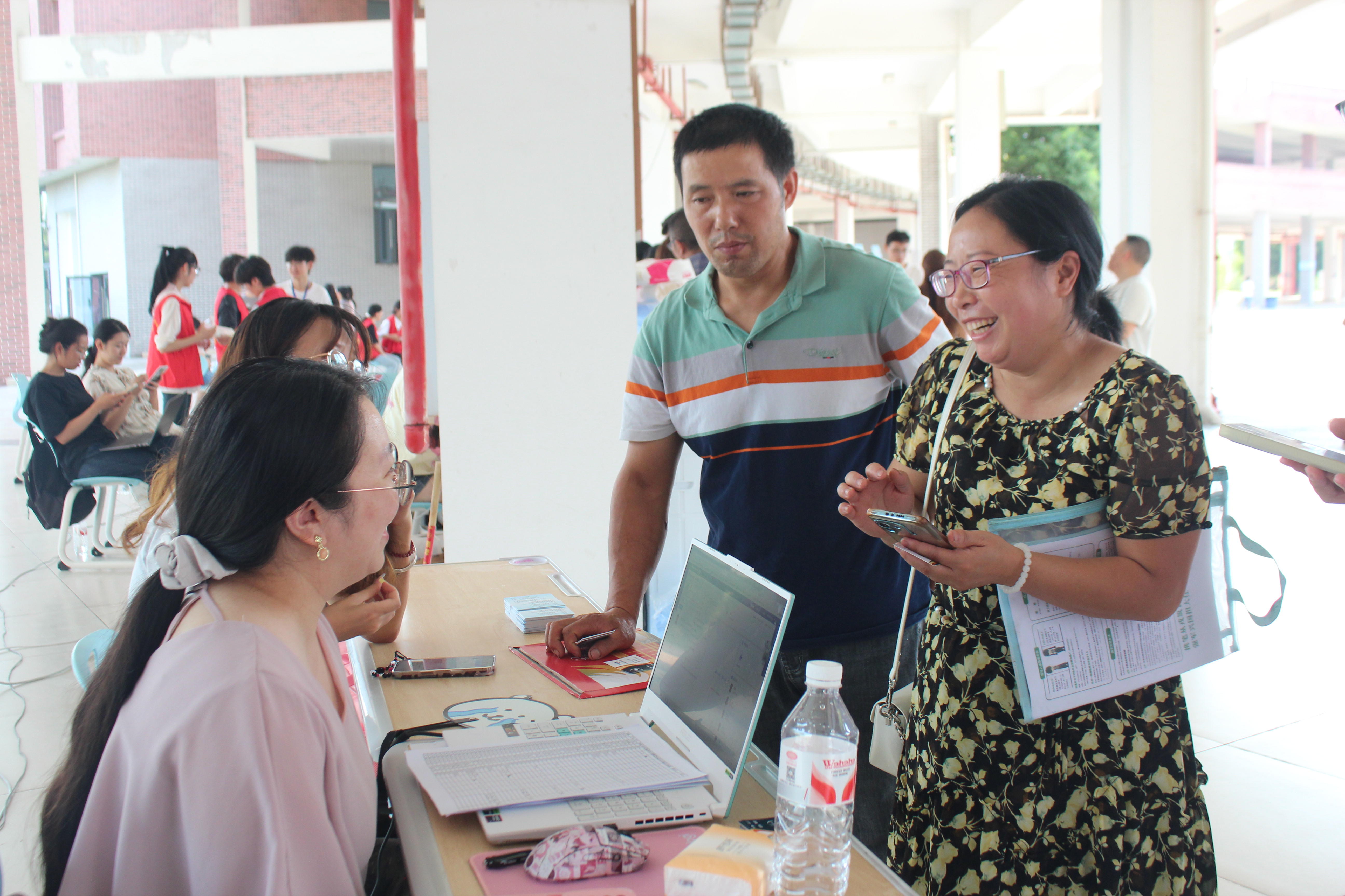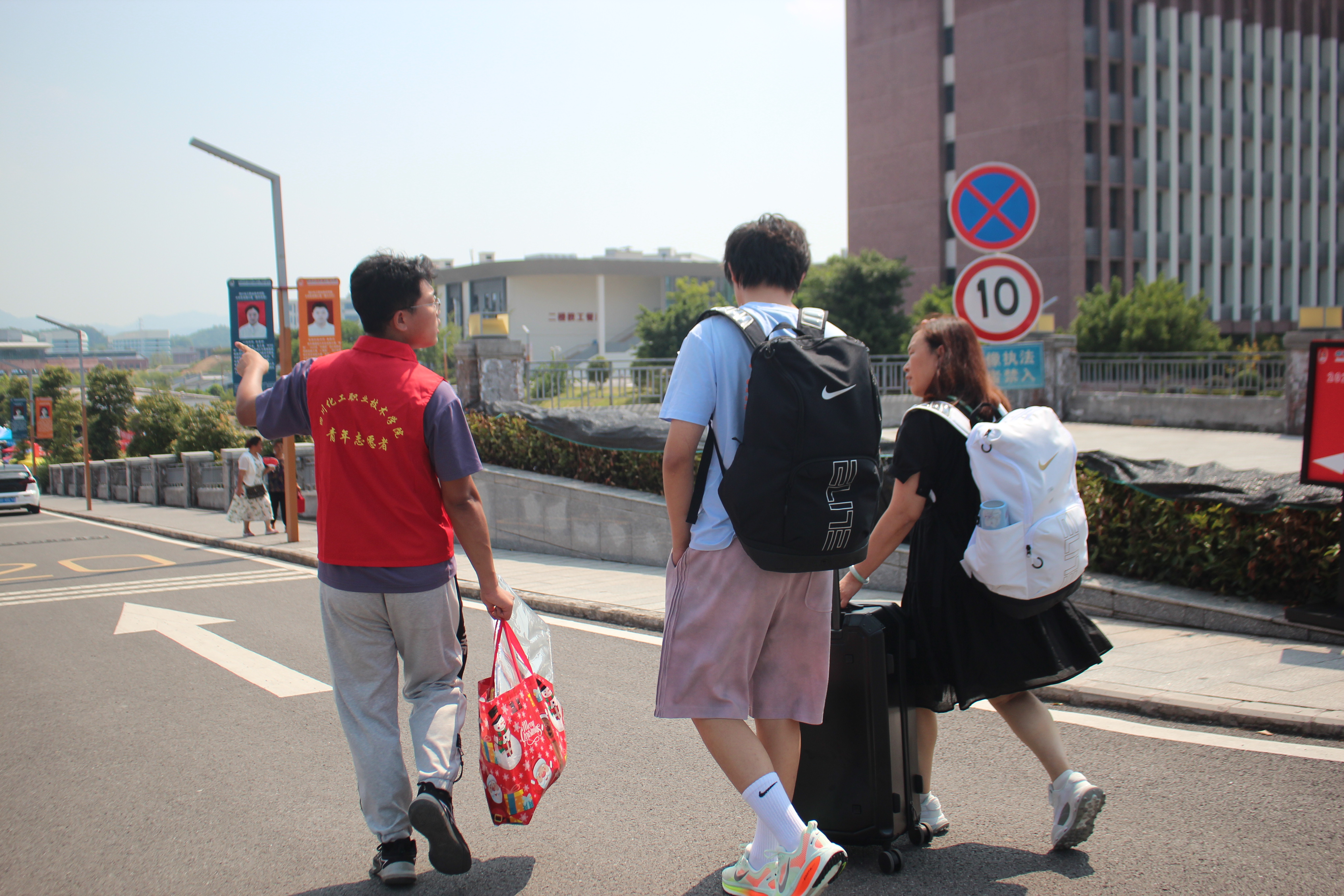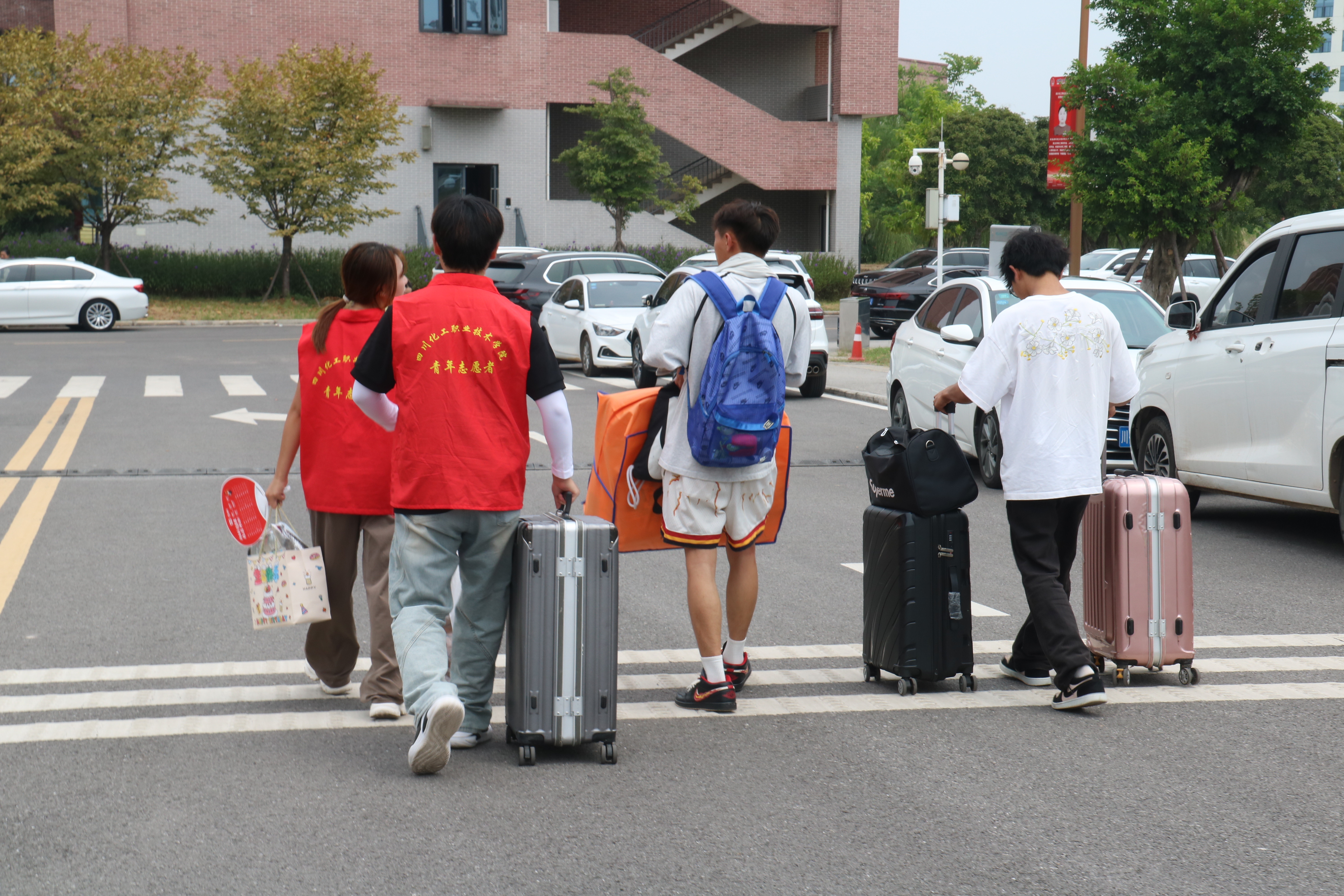 迎新当日清晨,志愿者身着统一服装,提前到岗就位,在学校门口、新生接待处、报到点等关键区域开展服务。他们主动上前接过新生行李,以“欢迎新同学”的热情问候引导新生,用细致服务让新生及家长快速熟悉报到流程,切实感受到学院的关怀。
