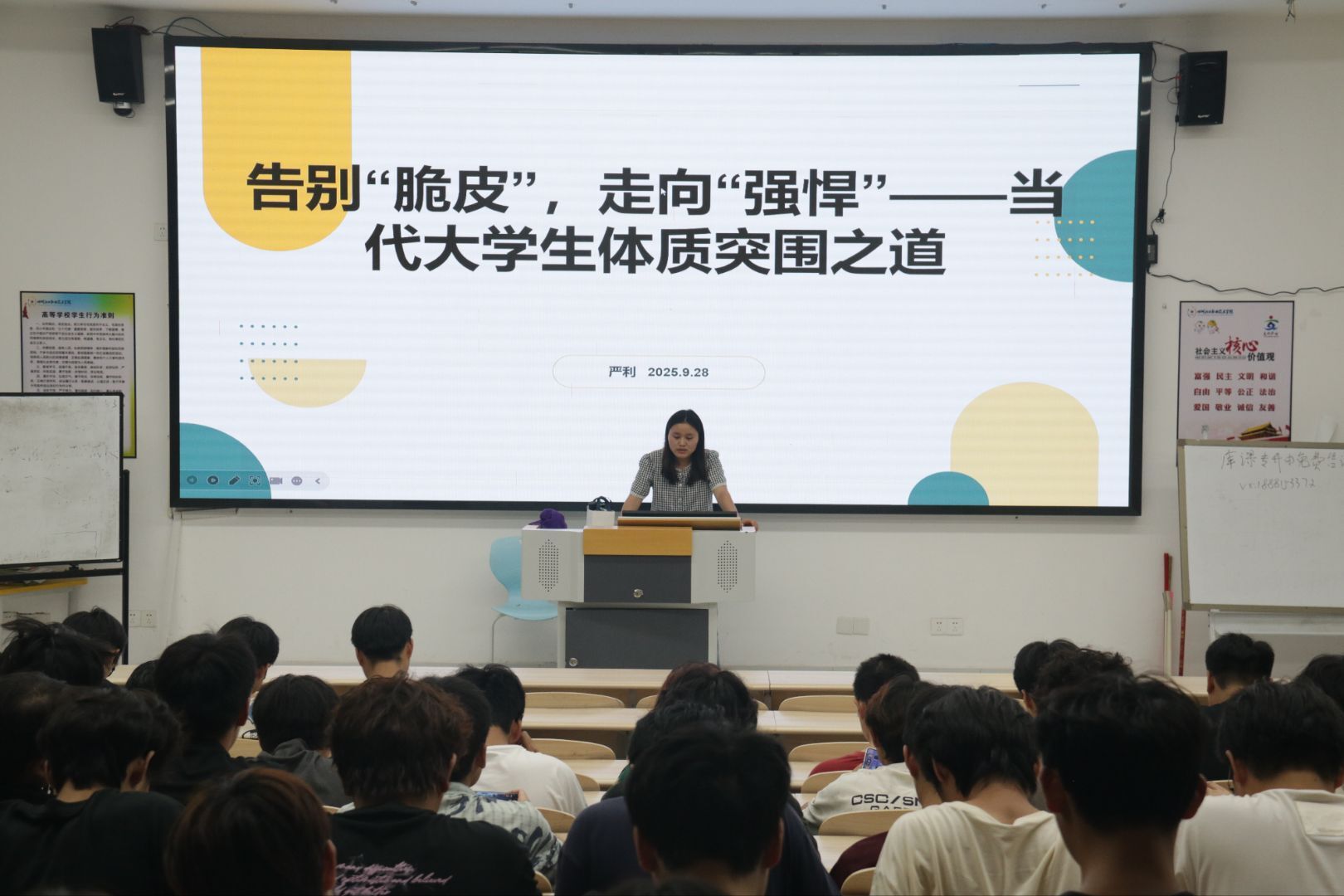 为积极响应国家关于加强青少年体育、增强青少年体质的号召,切实改善我校学生体质健康现状,一场别开生面,主题为“告别‘脆皮’,走向‘强悍’——当代大学生体质突围之道”的主题讲座于2025年9月28日晚在我校11A107教室举行。本次讲座由机械工程学院的严利老师主讲,吸引了众多学生到场聆听。