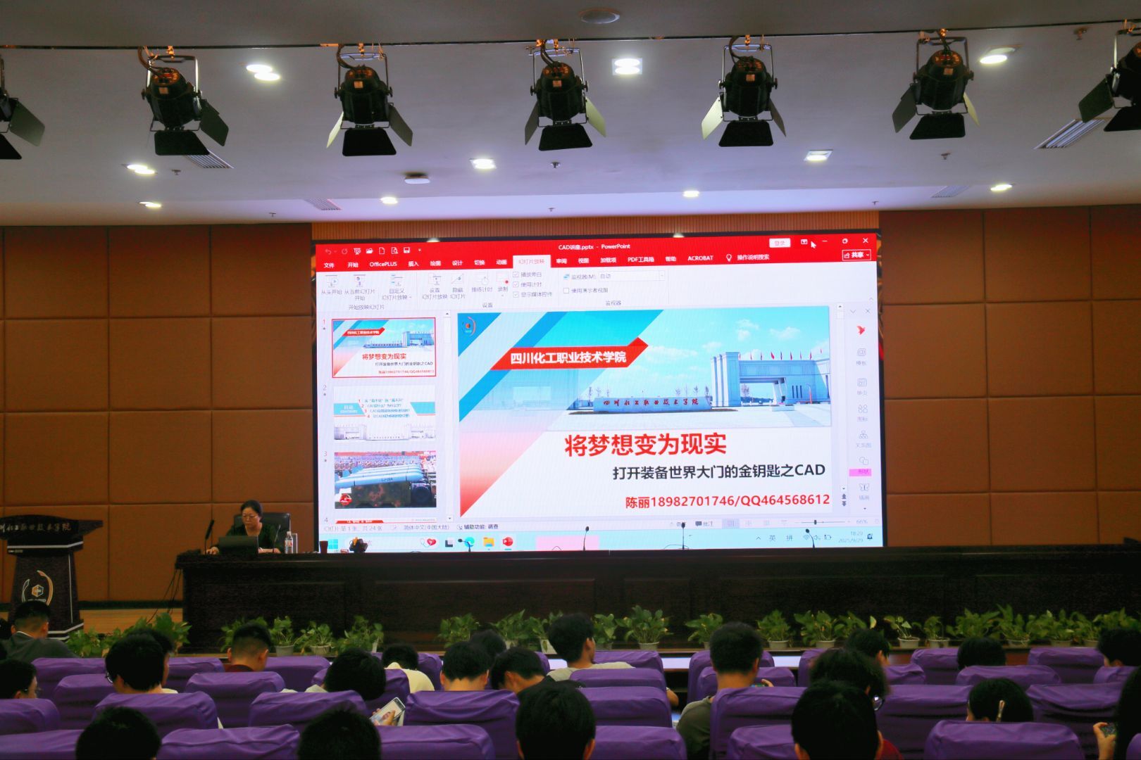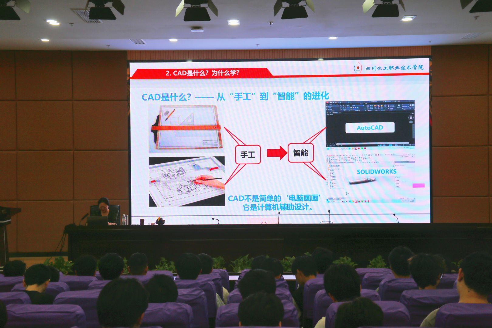 2025年9月29日,四川化工职业技术学院机械工程学院在图书馆第二学术报告厅举办了“一院一品”活动,主讲人陈丽老师“将梦想变为现实,打开装备世界大门的金钥匙之CAD”打破专业壁垒,以趣味互动的方式,向零基础同学展示了三维设计的魅力,激发同学们对数字制造的兴趣,为学院学子跨学科创新打开一扇新的大门。