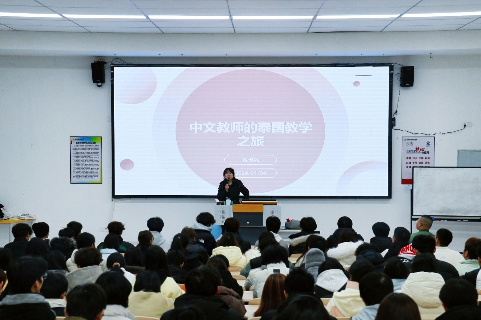1月4日,机械工程学院举办“中文教师的泰国教学之旅”分享讲座。当语言成为桥梁,文化的异同便成为生动的课堂。本次讲座以一线教师的真实经历为脉络,引领同学们沉浸式体验了国际中文教育的实践场景,感知跨文化交流的独特魅力与深厚价值。