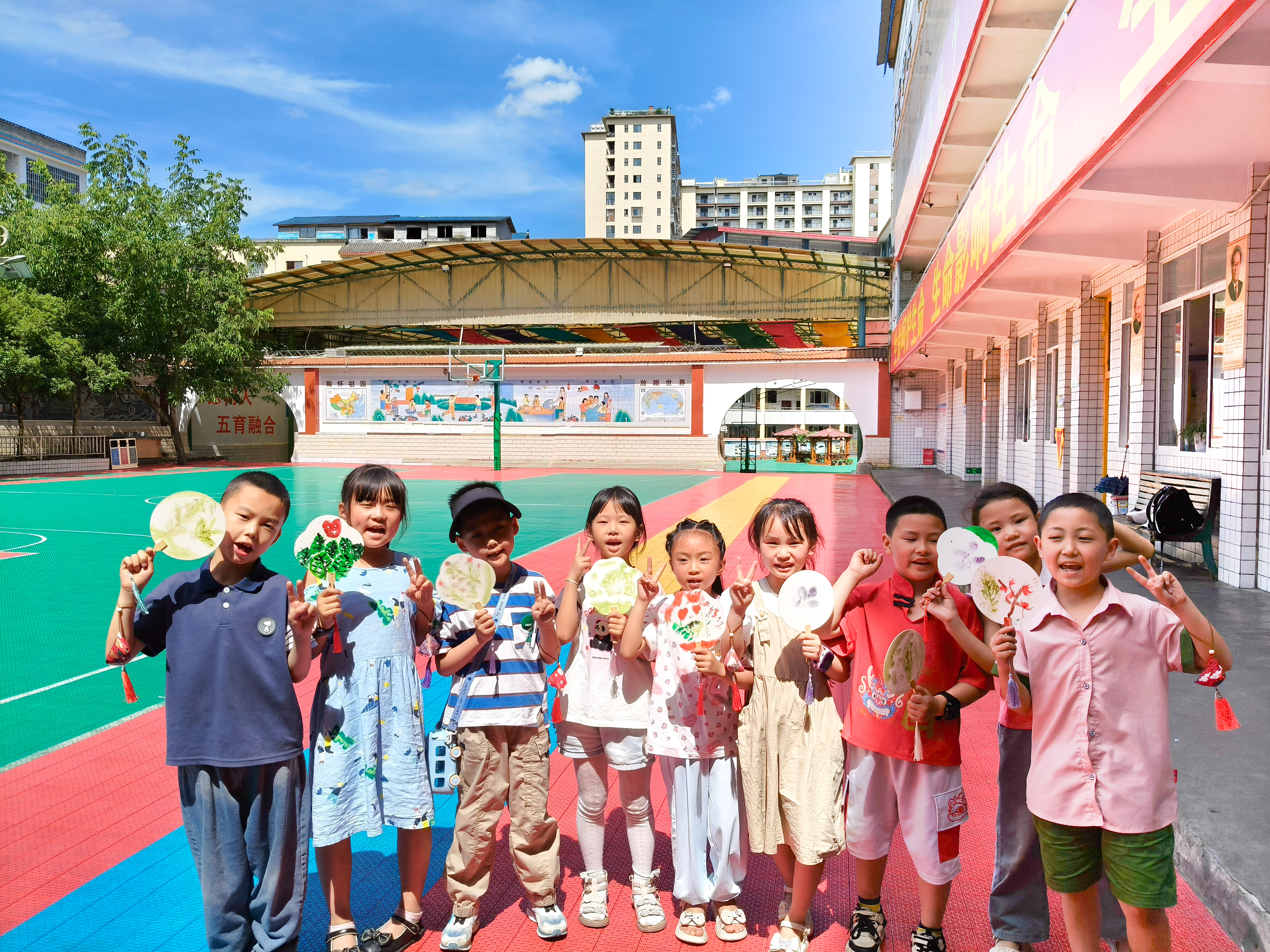 午后,活动切换至“传统文化浸润”频道。团队成员化身“文化传承使者”,带领孩子们踏上“触摸传统之美”的奇妙旅程。团扇拓印课堂上,备好的各色花草成为小小艺术家们的天然颜料。孩子们团团围坐,小心翼翼地将形态各异的叶片、花瓣在团扇上构图,再用拓印工具轻轻敲击。刹那间,植物的脉络与色彩在扇面自然流淌、定格,古老团扇焕发出独特的自然灵韵与生机。当清晰的纹理与斑斓的色彩在扇面完美呈现,此起彼伏的惊叹声充满了教室——这不仅是一次图案的创作,更是一场跨越时空的对话,是传统拓印技艺与自然之美的完美融合,是文化认同感在指尖悄然萌发。