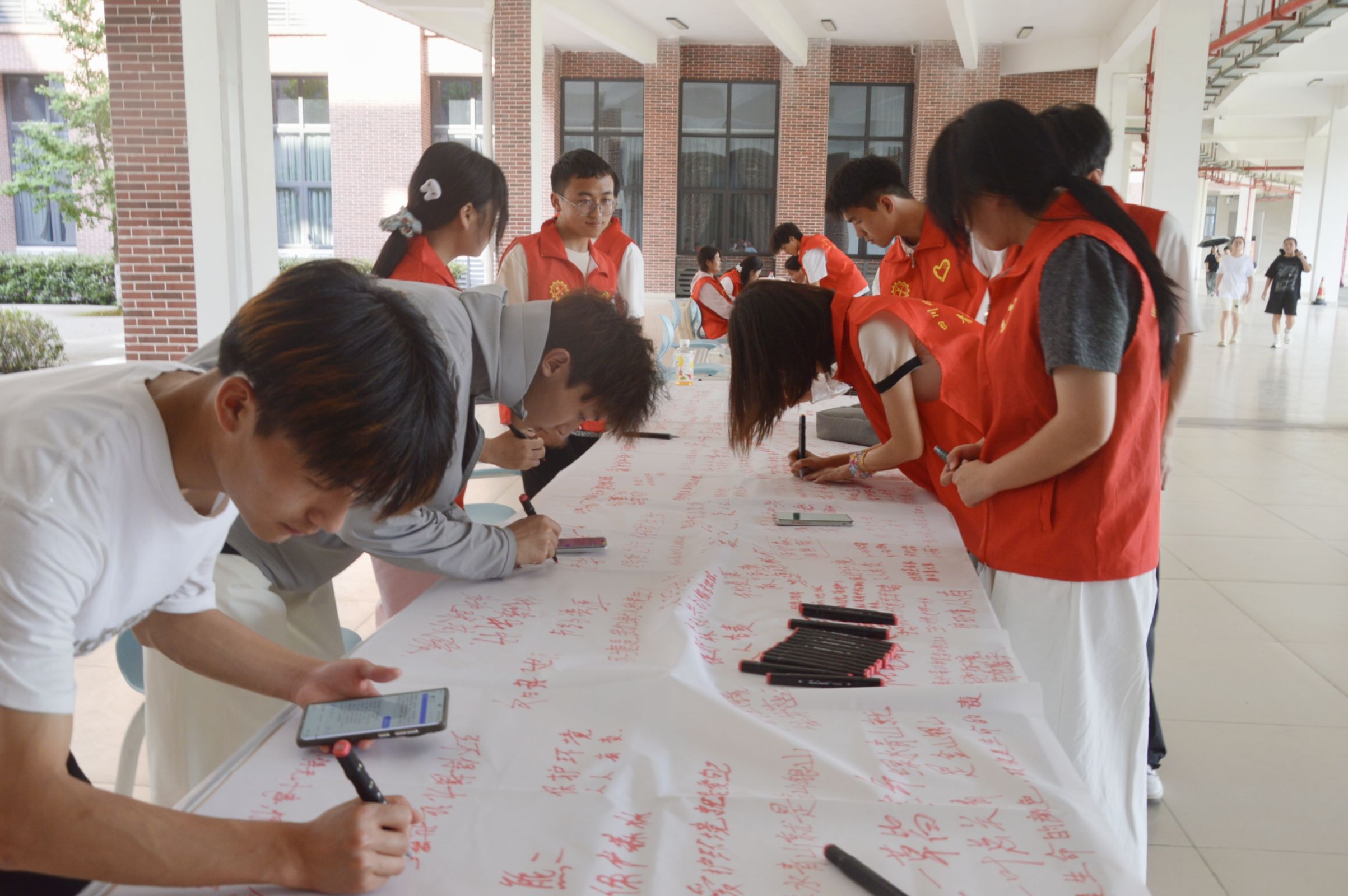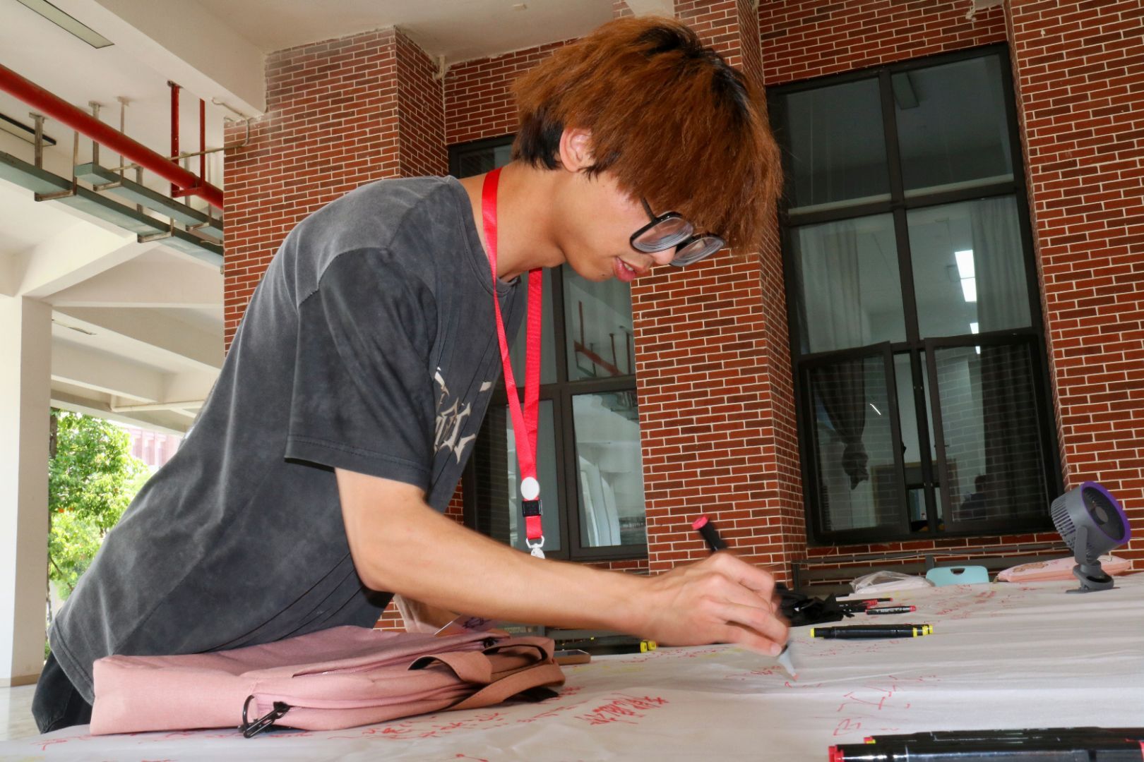 在“绘梦白幕”环节,一块大型白色幕布成为学生们表达环保决心的载体。参与者手持特制画笔,在幕布上郑重写下“守护绿水青山,从节约每一张纸开始”“拒绝塑料污染,共护地球家园”等倡议,或用简笔勾勒蓝天白云、绿树河流等图案,将对地球的热爱转化为可视化的承诺。字迹与图画交织的幕布上,既有对环境问题的深刻反思,也有对绿色未来的美好期许,形成一幅充满青春力量的“环保宣言墙”。这种“创作+实践”的闭环,让学生在享受艺术创作乐趣的同时,不知不觉加深对环保知识的理解。当一幅幅饱含巧思的作品在幕布上渐次呈现,原本空白的画布逐渐变成色彩斑斓的“环保故事集”,路过的学生们纷纷驻足欣赏,加入创作,形成“一人创作、众人参与、全员受教”的良性循环。