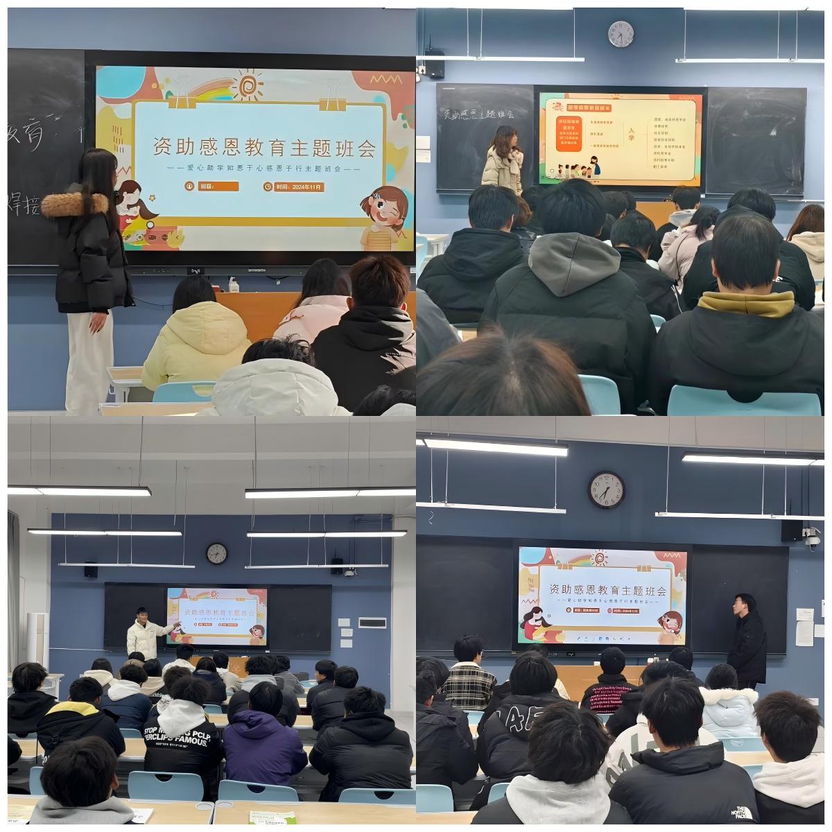 为深入贯彻落实资助育人政策,增强学生的诚信意识与感恩情怀,机械工程学院于2024年11月28日-12月6日在全院范围内组织开展了“资助育人,诚信感恩”主题班会。此次班会由各班级辅导员主持,全体学生积极参与。