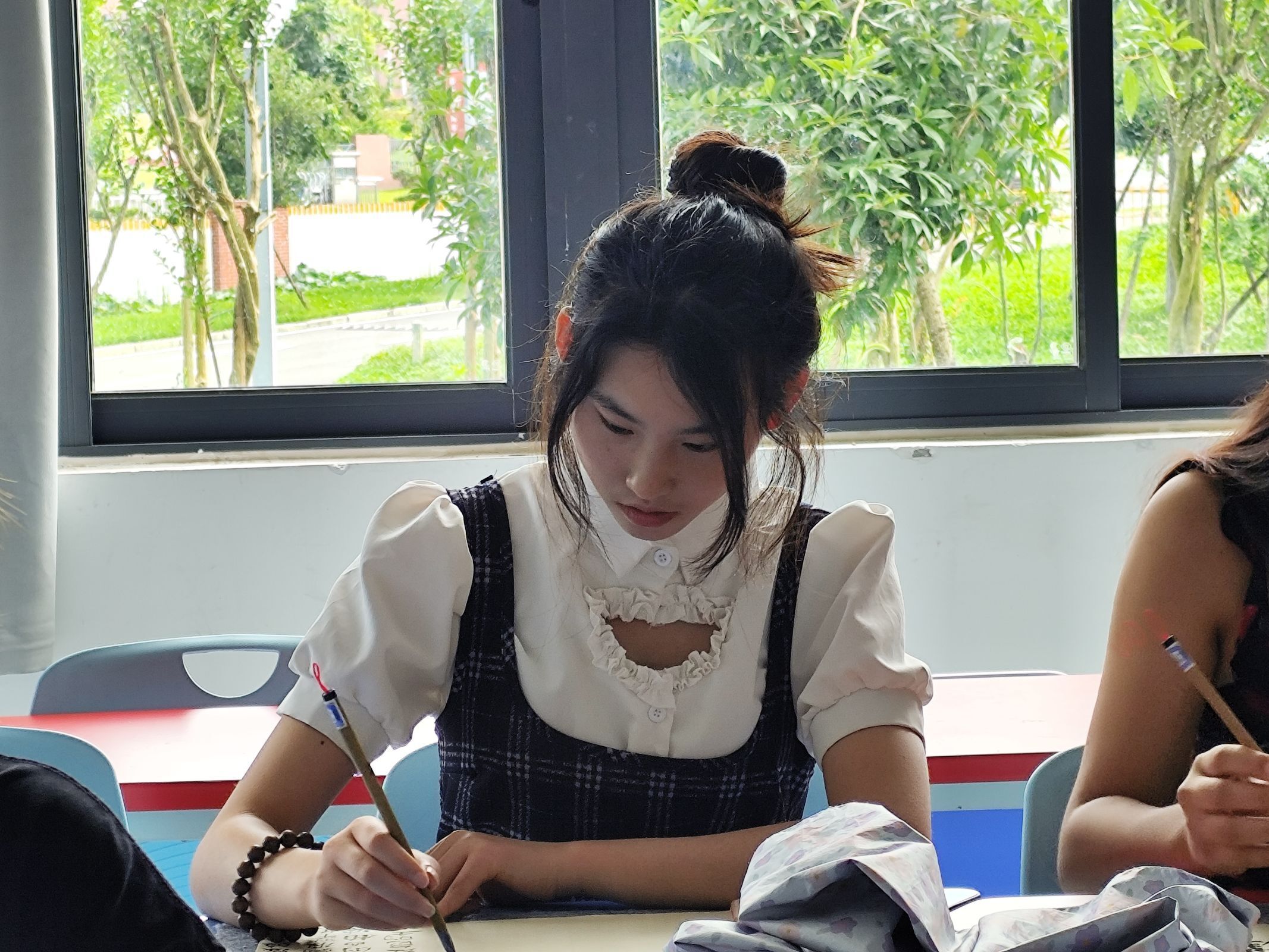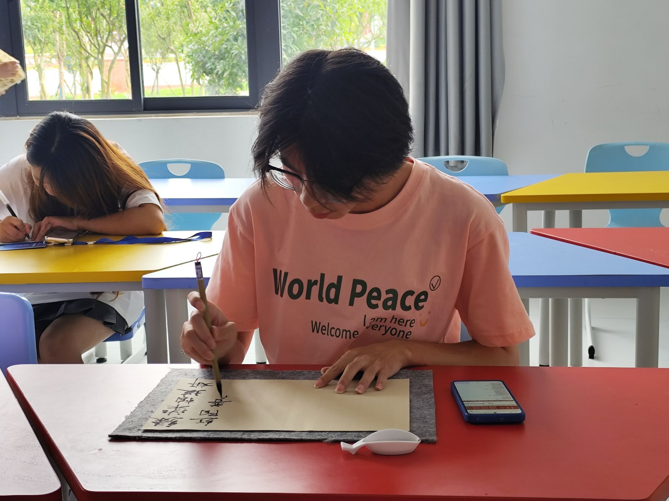 本次活动有硬笔书法和软笔书法两种形式。星火青年志愿者服务队为选手提供比赛用纸、软笔用墨。比赛中,同学们满怀激情,用心书写每一笔笔画、每一个汉字,起笔轻盈、落笔厚重,笔法间尽展自己的书法才能。现场洋溢着笔墨之香、向上之风。