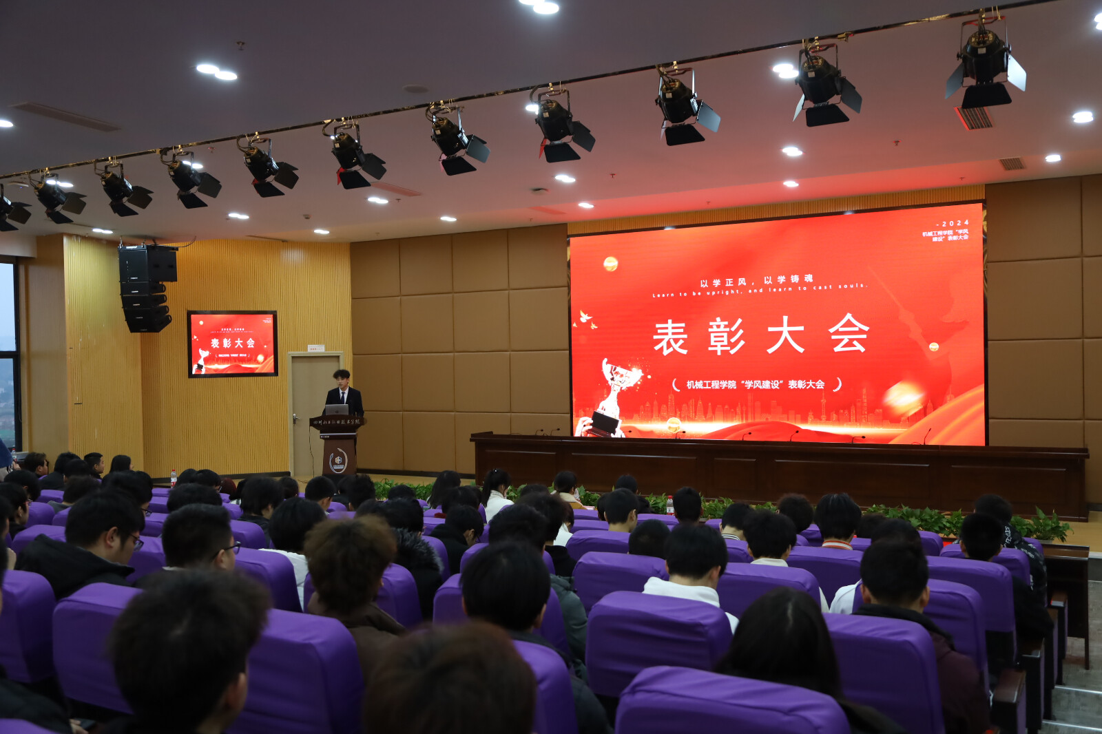3月6日,为践行我校“厚德、博学、广才、精业”的校训精神,强化我院学风建设,增强学生学习的积极性与主动性,机械工程学院在第二学术报告厅举办了“学风建设”表彰活动。出席本次表彰活动的嘉宾有机械工程学院团总支书记曾佳瑶,专任教师谢小青,专职辅导员严峻霖、严利。