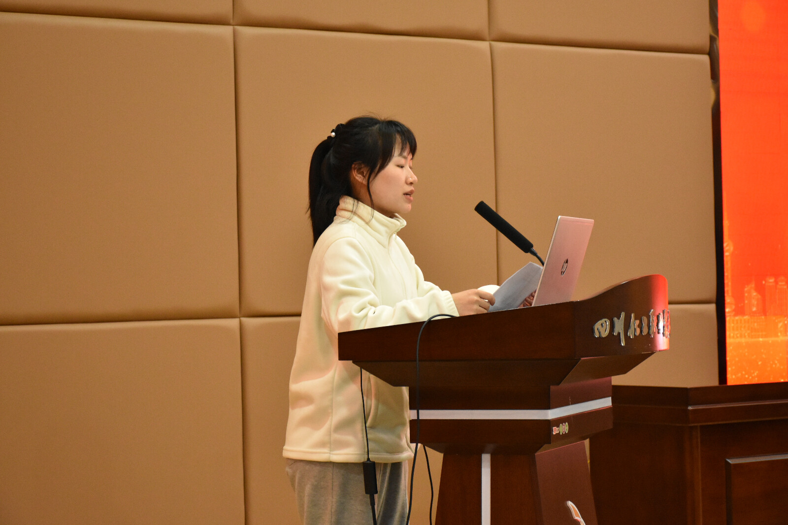 表彰活动伊始,机械工程学院团总支书记曾佳瑶发表致辞。她表示:大学生走在社会发展的前沿,也正是意气风发最敢于拼搏创新的阶段,同学们应明晰所处的人生阶段,明确新学期目标与方向,勇于拼搏,敢于创新,共同建设优良严谨的学风。其次,优秀获奖同学代表张欣爱向同学们分享了她能持之以恒阅读、不忘初心学习的原因,还为同学们推荐了许多优秀著作。她告诉同学们:陷入迷茫时应从书中找寻答案,于低谷时沉淀,于独处时自省。最后,严利为获得学习之星三等奖的12名同学颁布奖状。严峻霖为获得学习之星二等奖的9名同学颁发奖章。曾佳瑶为获得学习之星一等奖的王浩、胡铭洋、李远航3位同学颁发奖状。