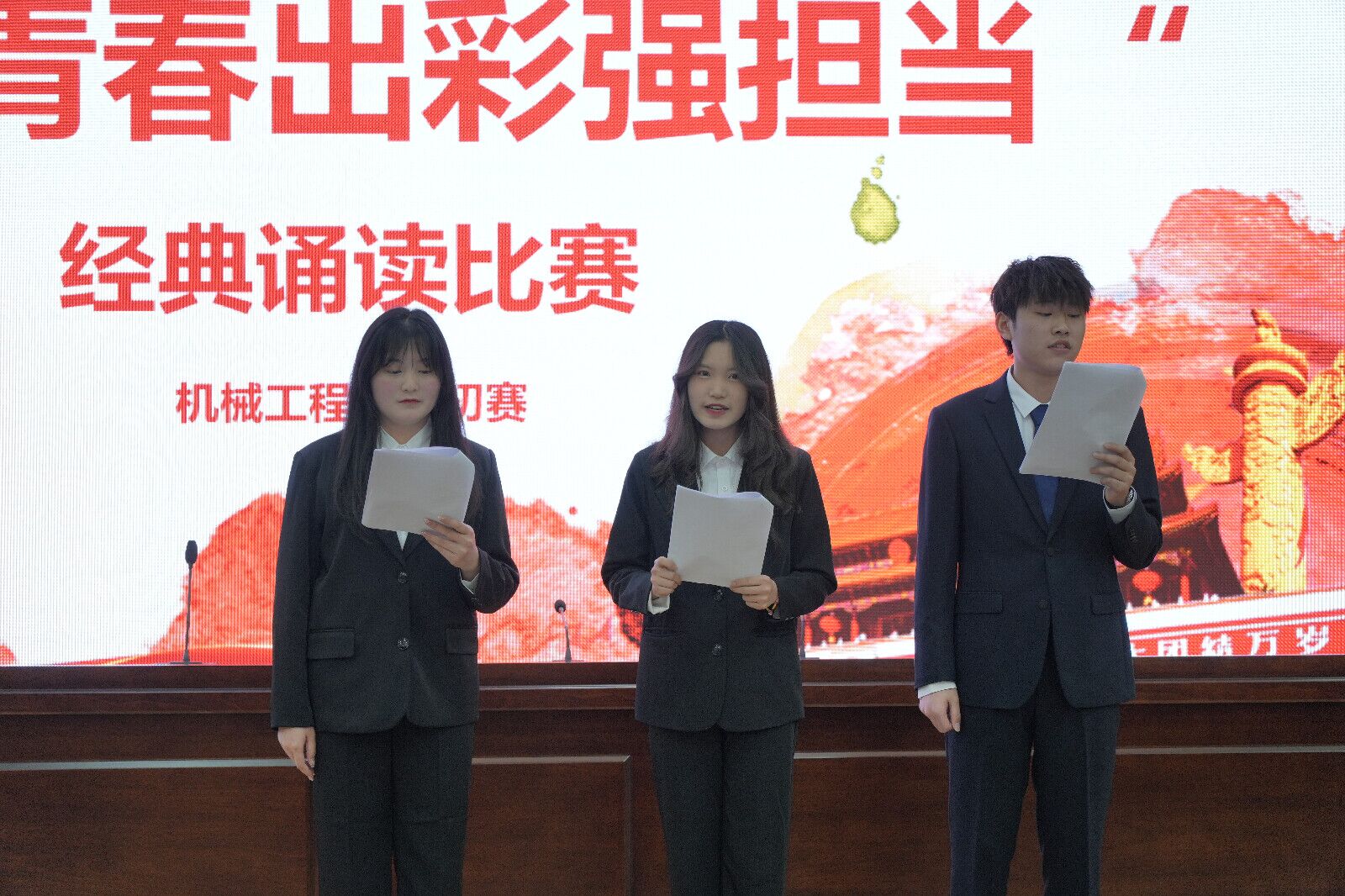 在这样一个奋进美好的时代,为传承经典文化,激发青春力量,3月20日,机械工程学院在图书馆第二学术报告厅举办了“同心向阳齐奋进,青春出彩强担当”经典诵读比赛。出席本次活动并担任评委的有机械工程学院党总支副书记张良勇、团总支书记曾佳瑶、专职辅导员严峻霖等六位教师。