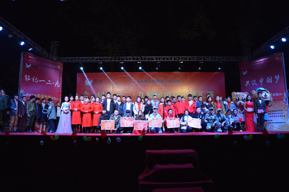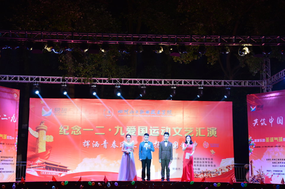 为纪念“一二·九”运动八十二周年,传承“一二·九”运动精神,激发学生爱国情怀。2017年12月17日晚,四川化工职业技术学院机械工程系、自动化工程系、信息工程系在小舞台联合举办了以“挥洒青春风采,弘扬爱国精神”为主题的文艺晚会。学生处张波副处长、机械工程系高朝祥主任、自动化工程系陈昌涛主任、信息工程系李宏主任等领导出席了此次晚会。