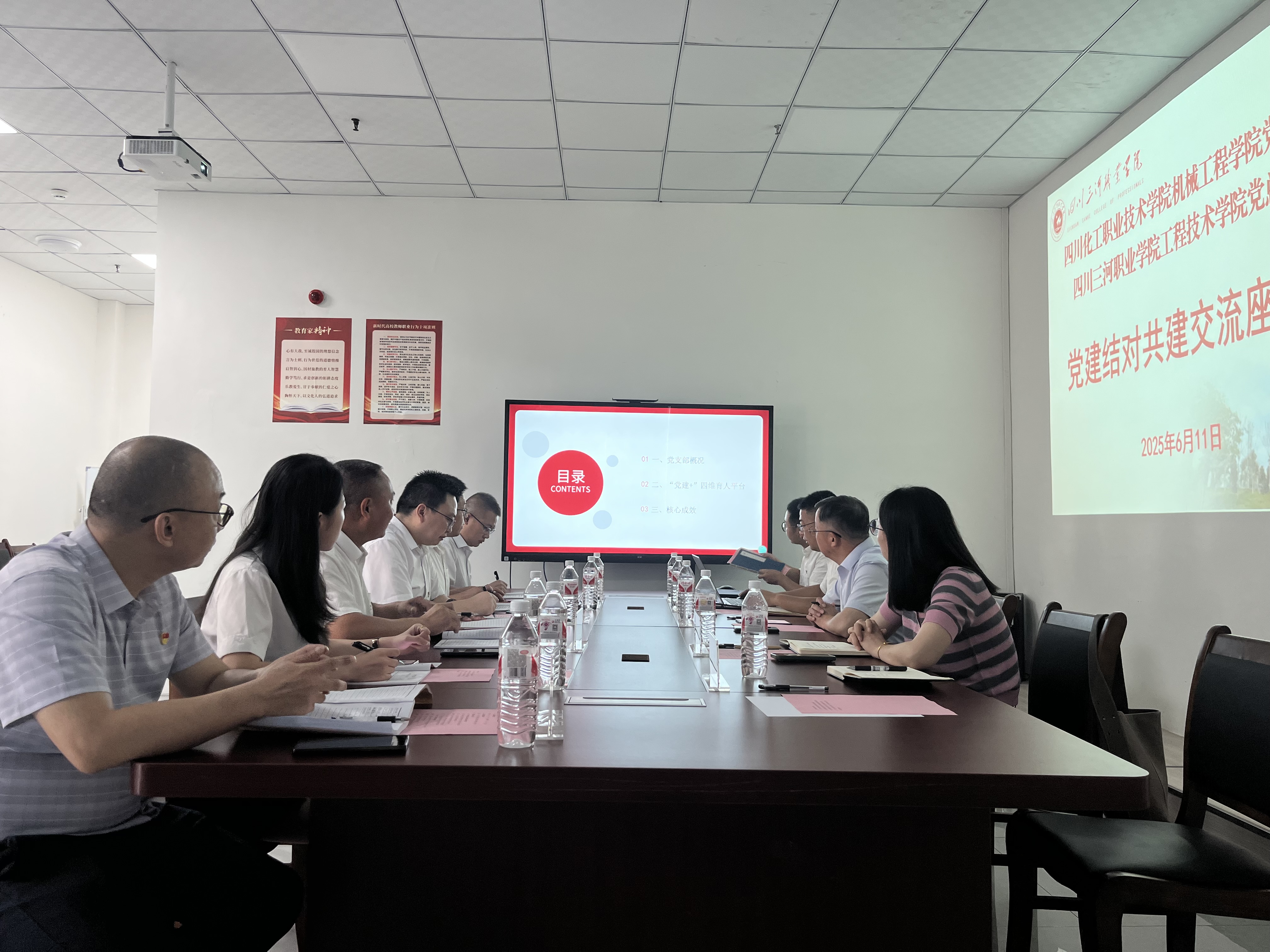 2025年6月11日,四川化工职业技术学院机械工程学院党总支与四川三河职业学院工程技术学院党总支在四川三河职业学院开展党建结对共建活动,助力推动党建与业务同向发力。
