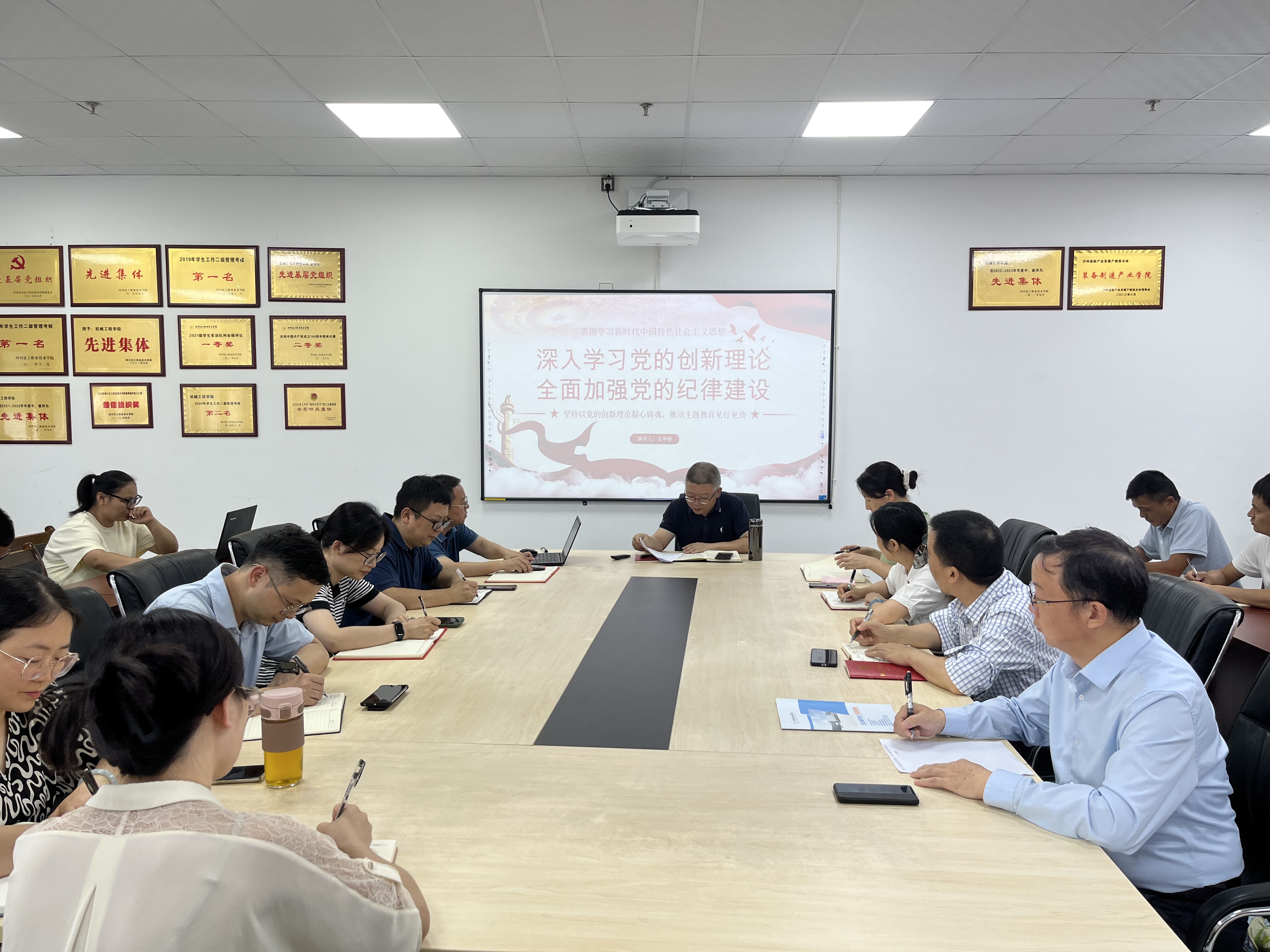 6月26日下午,学校党委副书记、院长文申柳在综合办公楼113室以“深入学习党的创新理论 全面加强党的纪律建设”为题,为机械工程学院党总支、数字经济学院党总支全体教师党员讲授专题(纪律)党课。
