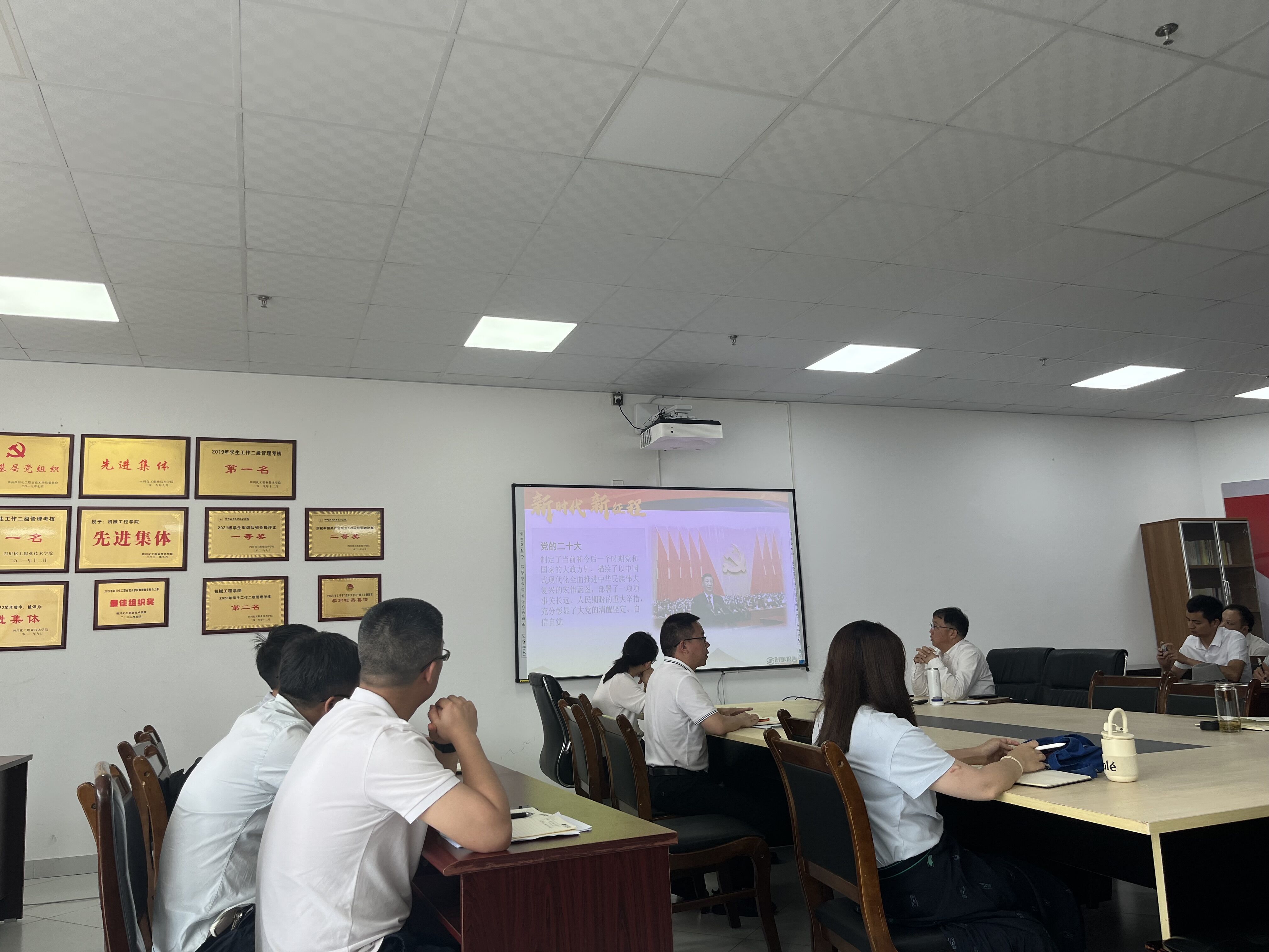 为深入开展学习贯彻习近平新时代中国特色社会主义思想主题教育,全面学习、全面把握、全面落实党的二十大精神,不断开创学院事业发展新局面。5月24日上午,我院党总支副书记任小鸿以“立志复兴伟业踔厉奋发前行”为主题,在综合办公楼113室,机械工程学院党总支全体党员讲授了一堂生动的党课。