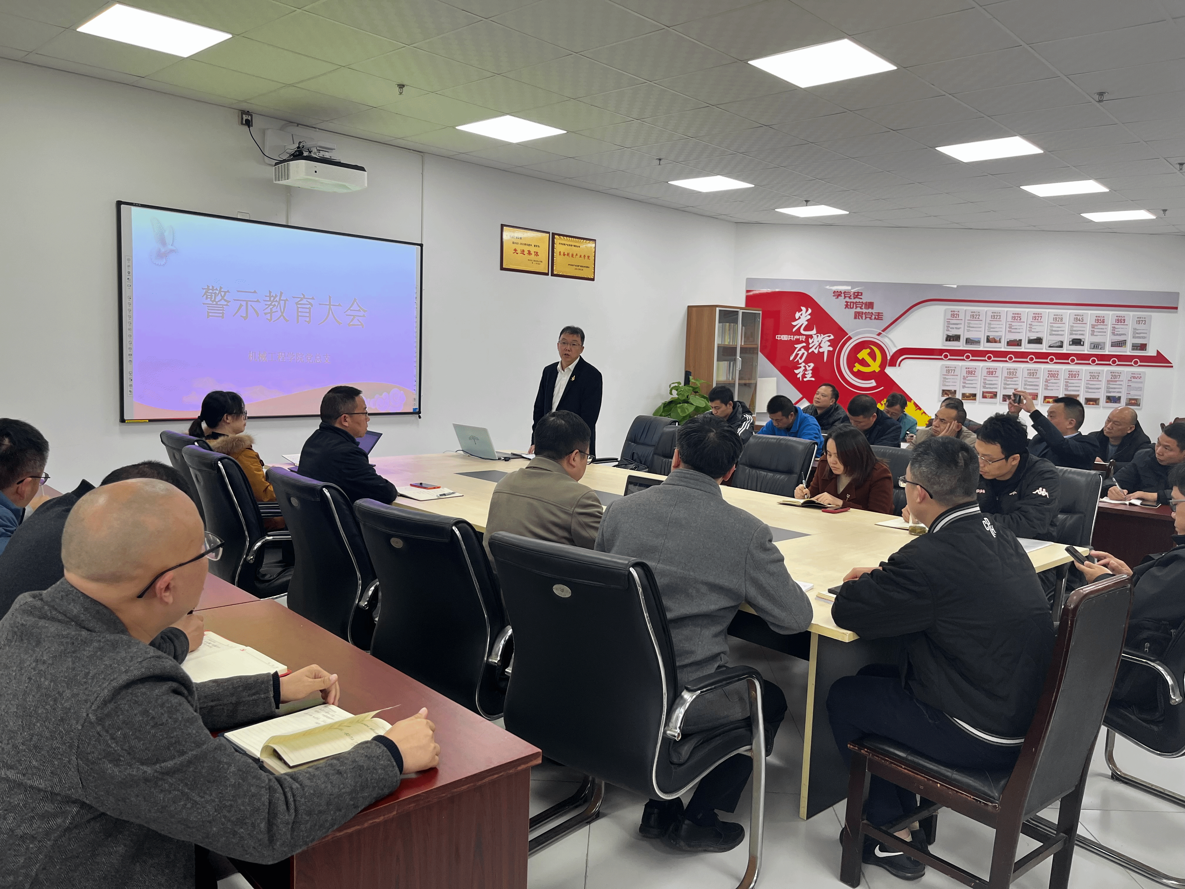 为深入推进全面从严治党,营造良好政治生态,始终保持高压态势,以严的基调正风肃纪反腐。切实增强我院教职工廉洁自律意识、法制意识,牢固树立纪律和规矩意识,自觉遵守廉洁自律各项规定,不断优化净化学院的政治生态,保持风清气正的从教、育人环境。学院党总支于11月15日下午在综合办公楼113会议室召开“以案为鉴,正风肃纪”警示教育大会,会议由学院党总支副书记任小鸿同志主持,全院教职工参加会议。