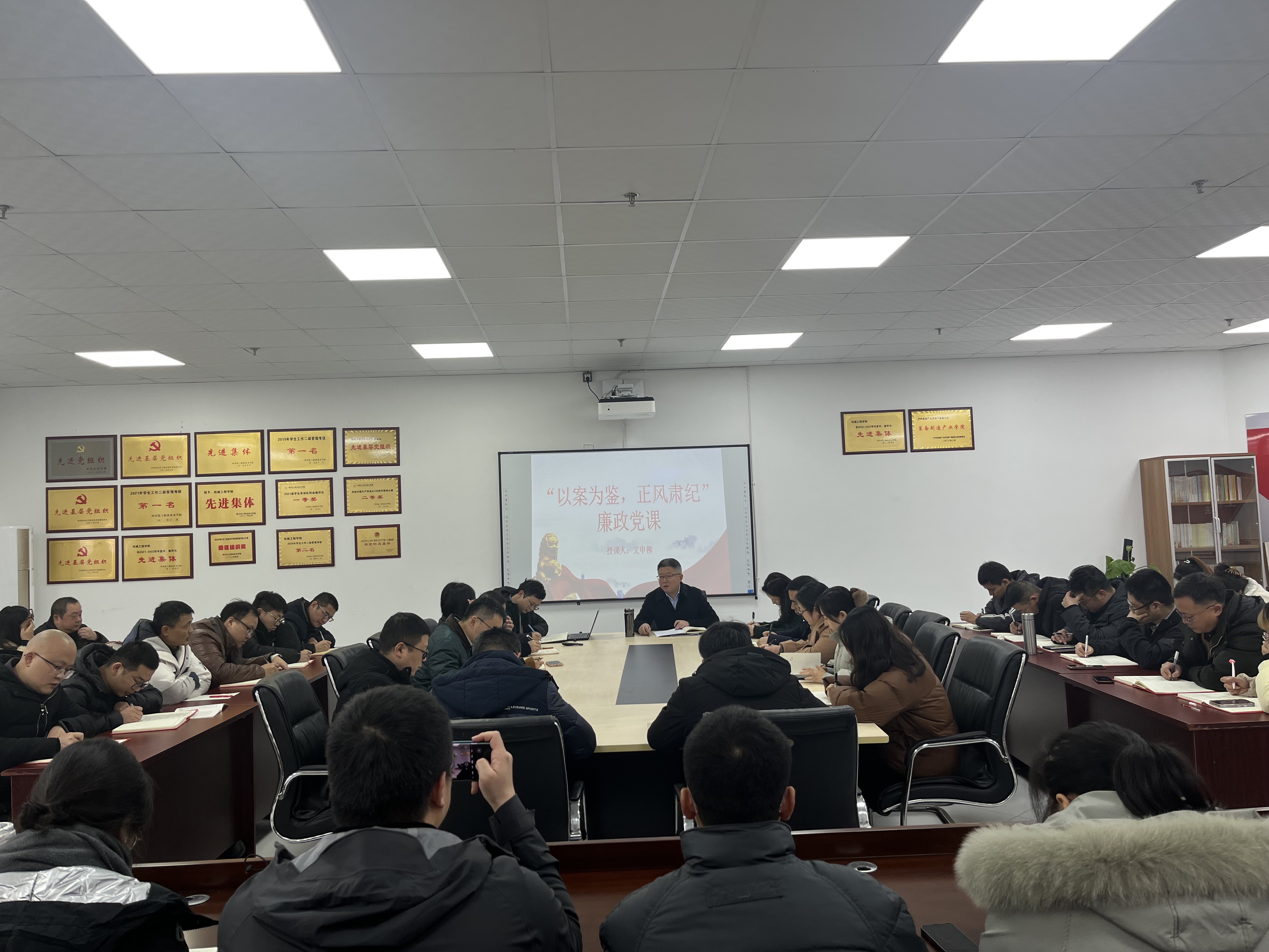 为推进全面从严治党向纵深发展,提高党员干部尤其是领导干部党性修养,筑牢廉洁自律和拒腐防变思想根基,12月25日,学校党委副书记、院长文申柳以“以案为鉴正风肃纪”为题,给机械工程学院、数字经济学院全体党员上了一堂内涵丰富、发人深省的廉政教育专题党课。