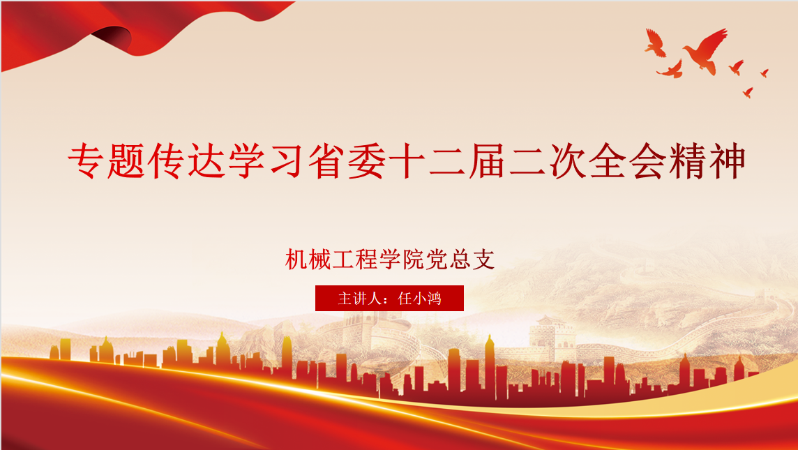 12月28日下午,机械工程学院党总支组织学习四川省委十二届二次全会精神,并安排部署贯彻落实工作。此次专题学习通过腾讯会议线上方式进行,学院党总支副书记任小鸿主持学习并作讲话。