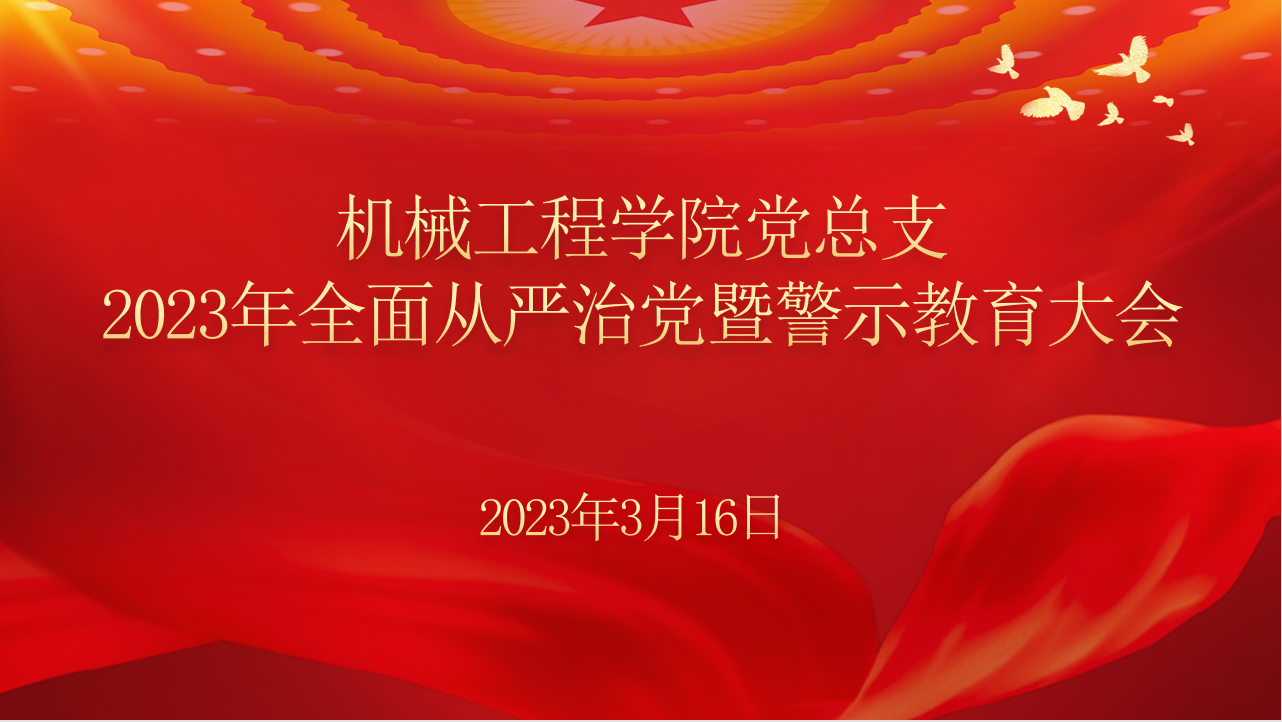 3月16日下午,机械工程学院党总支在综合办公楼113会议室举行2023年全面从严治党暨警示教育大会。学院全体教职工参加会议,会议由党总支副书记任小鸿主持。