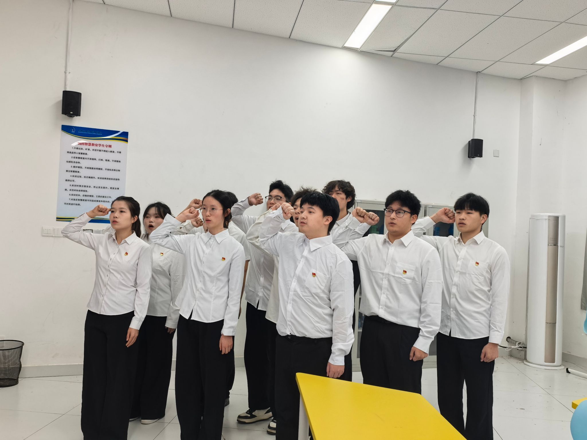 会议最后,焊接2332班的李开果同学作为领誓人,带领全体预备党员面向鲜红的党旗,进行了庄严而神圣的宣誓仪式。随后,邬玲书记发表了讲话,她向各位预备党员提出了明确的要求,并寄予了殷切的期望。她强调,预备党员应将政治理论学习作为个人成长必修课,系统深入学习党的先进理论和指导思想,加强党性修养与思想觉悟。同时,她希望大家以优秀党员为榜样,吸收其精神养分与宝贵经验。 在学习、生活以及日后的工作岗位上敢于担当责任、勇于面对困难,持续发挥先锋模范的作用。更为关键的是,要秉持求真务实、踏实肯干的精神,从细微之事做起,从自己做起,以实际举措为党的事业添砖加瓦,奋力在新时代的征途中谱写无悔的青春华章。