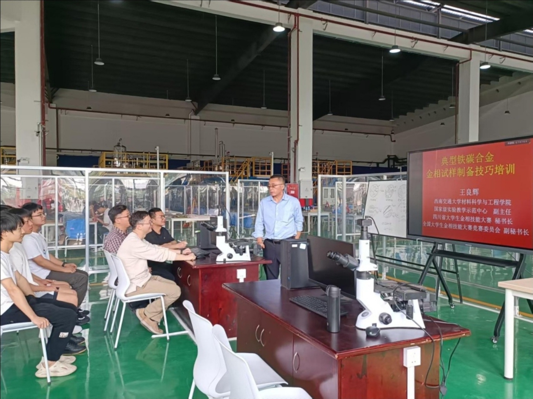 4月28日,为进一步提升工作室团队教师的专业技能与实践能力。任小鸿名师工作室特邀西南交通大学材料科学与工程学院国家级实验教学中心副主任王良辉和成都理工大学材料与化学化工学院管登高教授,围绕“典型铁碳合金金相试样制备技巧”和“金相图样质量评定”两大主题,开展了一场高水平的金属材料金相制备专项技能培训。