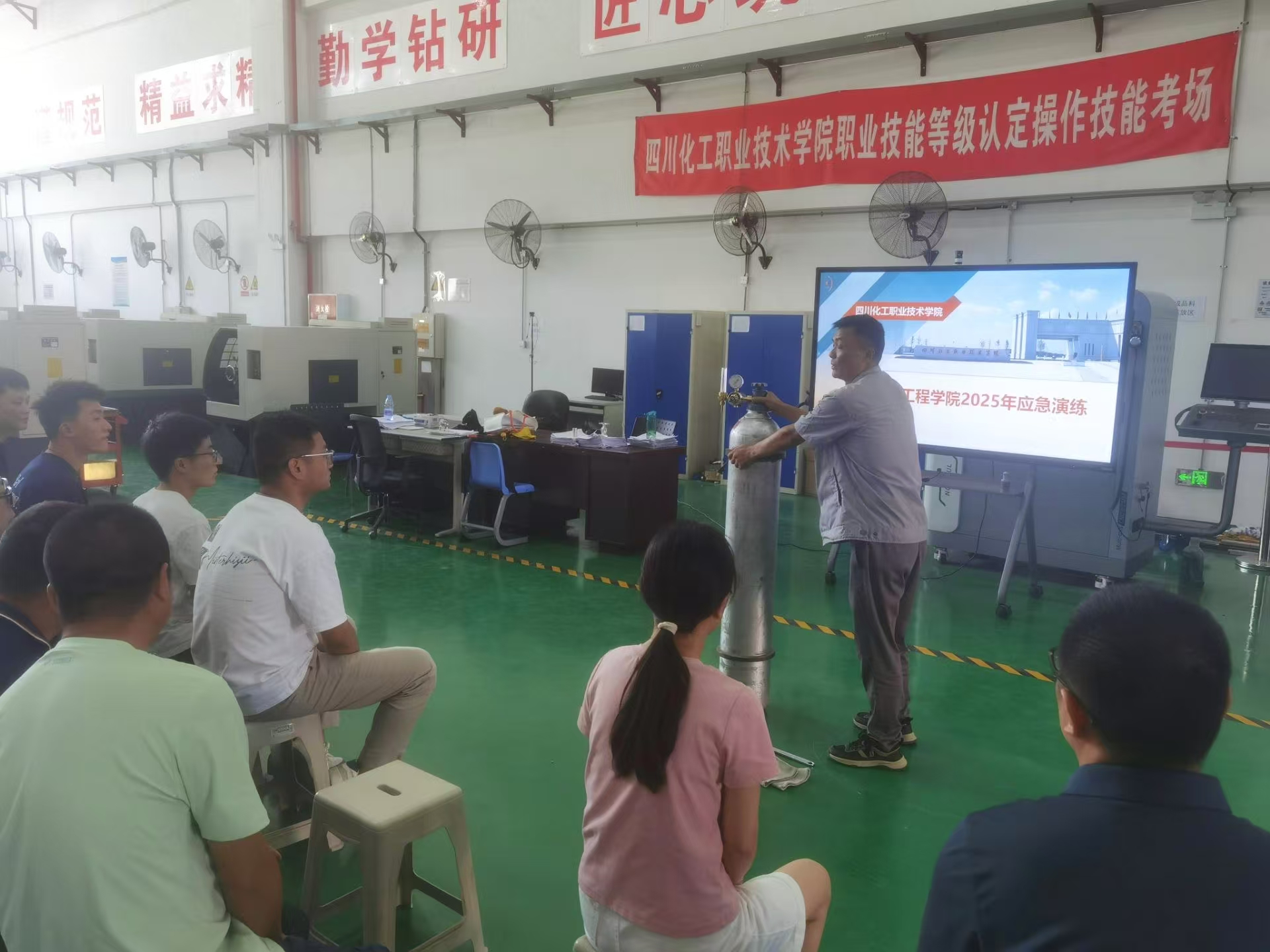 为深入贯彻“预防为主,防治结合”的安全事故处理方针,进一步提升师生对压力容器事故的应急处理能力,机械工程学院于2025年6月11日在机械工程实训中心开展压力容器事故应急演练,陈玲副院长、机械工程学院实训和实验人员、新进教师、焊接专业教师等30余人参加了演练。此次演练旨在普及压力容器及应急抢救知识,强化师生的安全意识,确保在突发事故中能够迅速、有效地进行应对,从而保障师生的人身安全和财产安全。