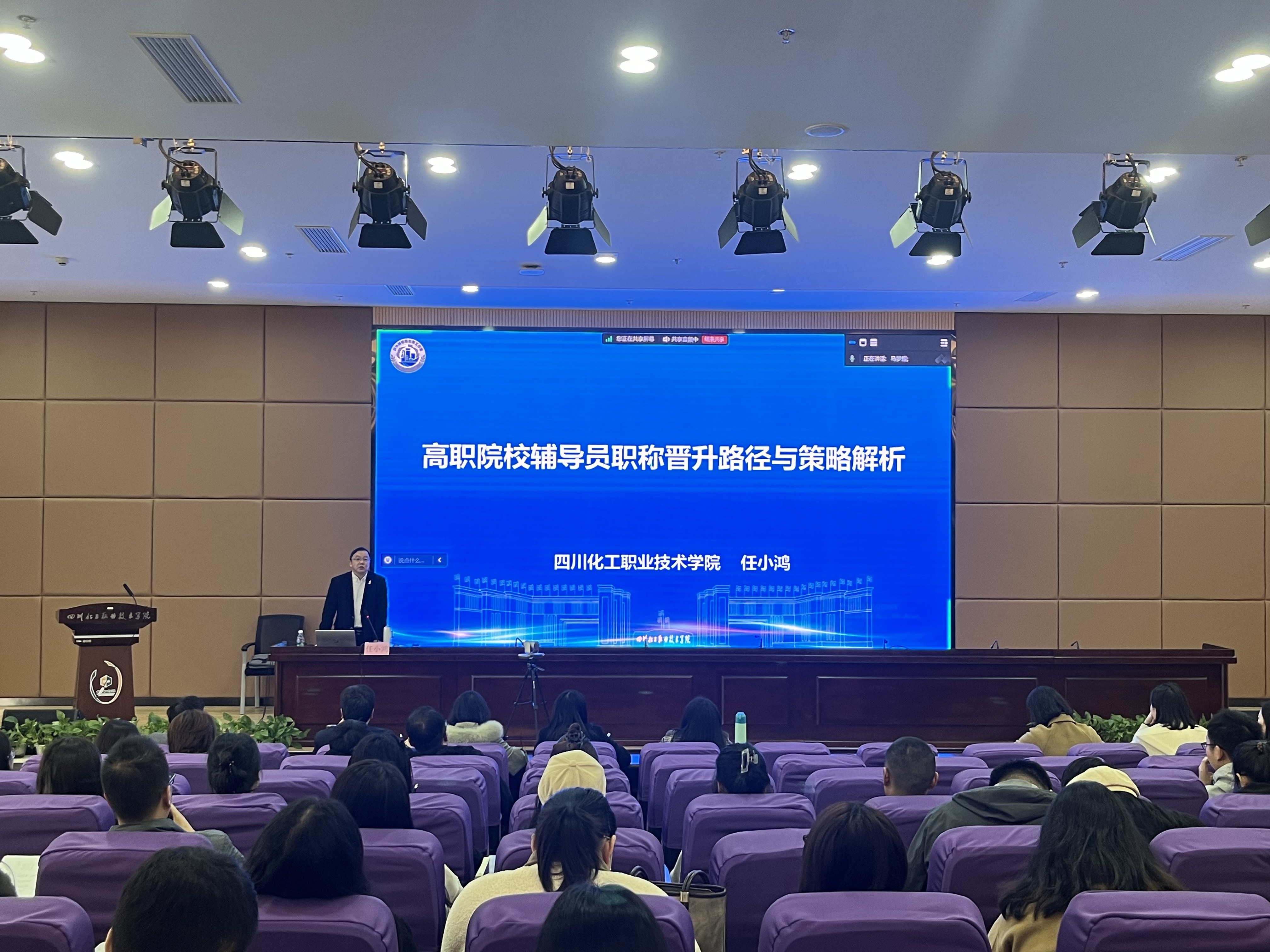 2024年11月21日下午,机械工程学院院长任小鸿在第二学术报告厅为全校专兼职辅导员开展了“高职院校辅导员职称晋升路径与策略解析”讲座。