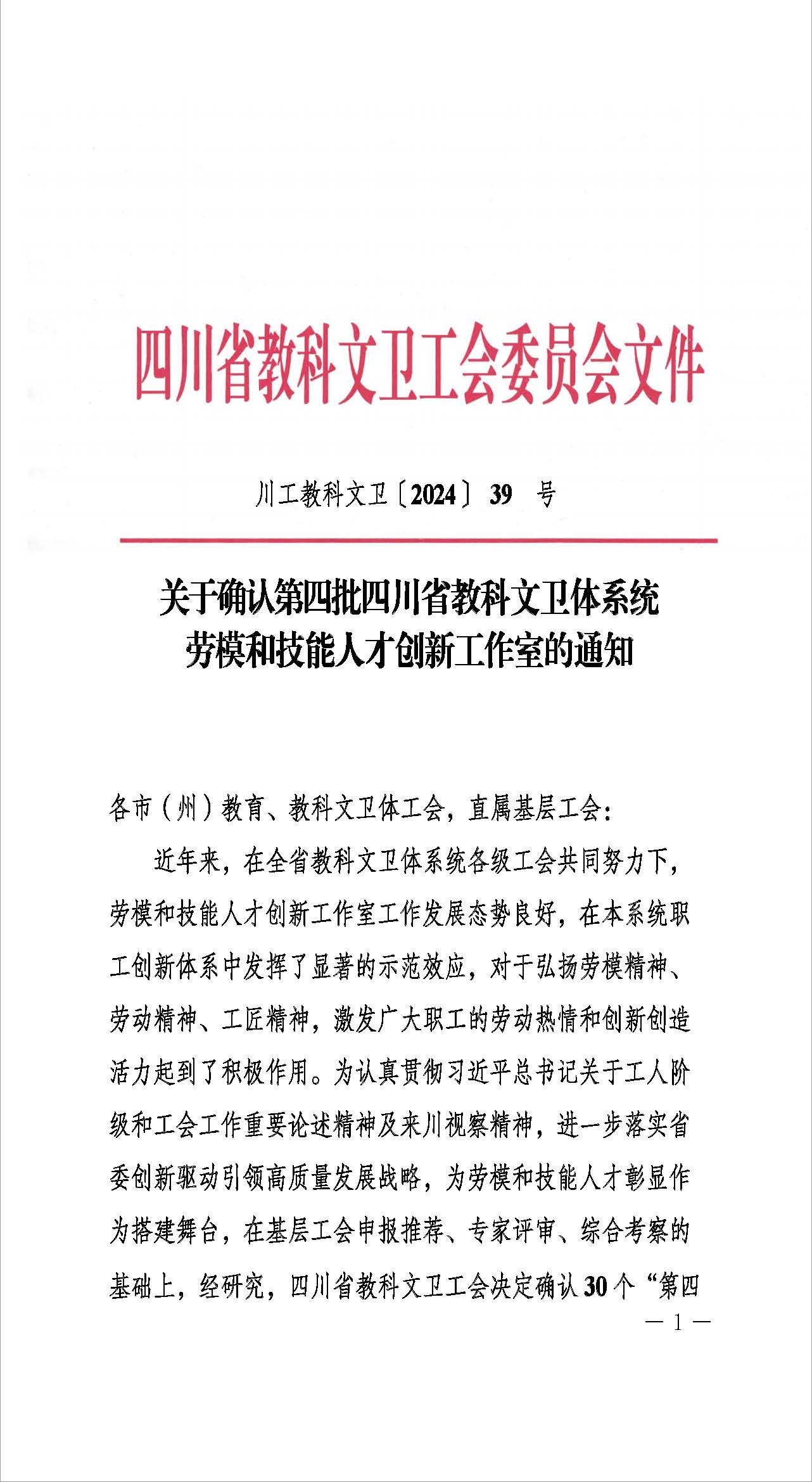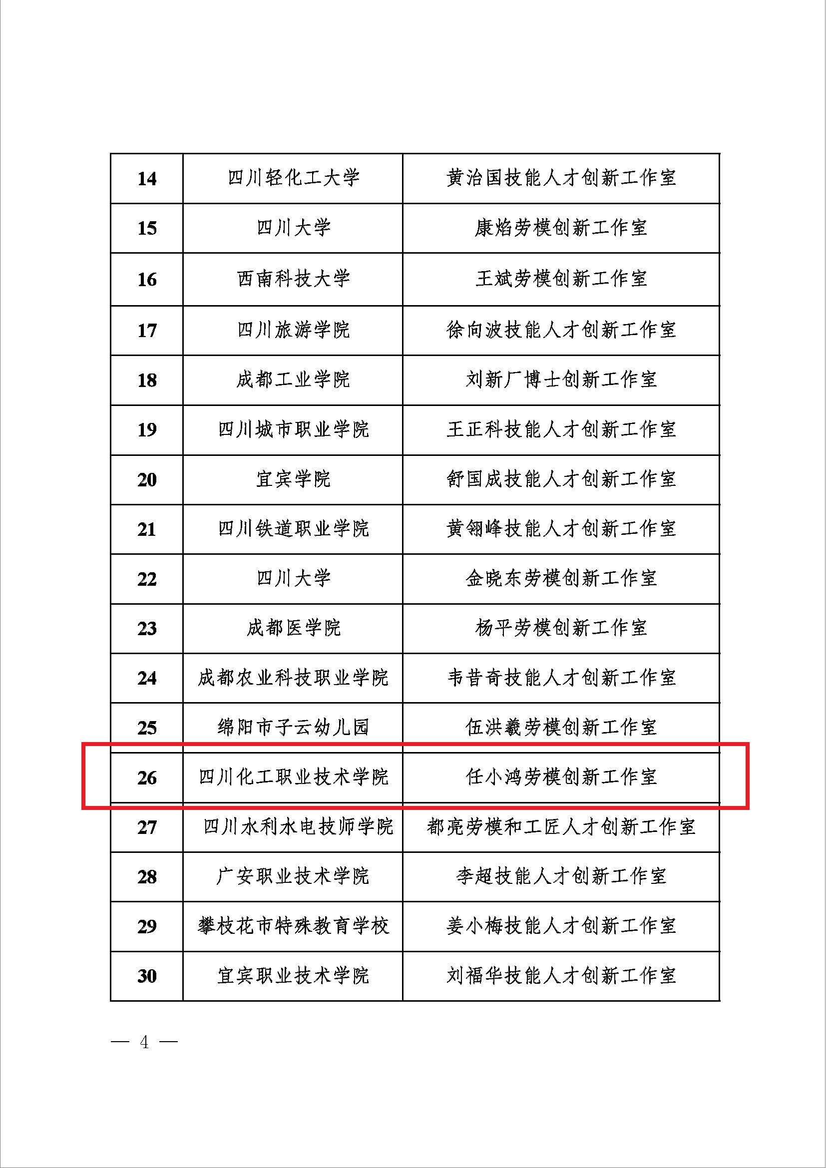2024年12月10日,通过四川省教科文卫工会组织专家评审和综合考察,我校机械工程学院任小鸿教授团队获得“任小鸿劳模创新工作室”。