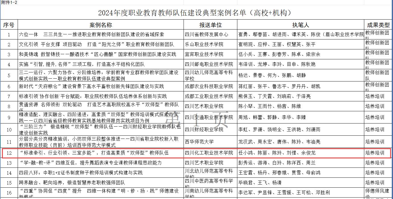2月13日,四川省教育厅印发了《关于印发2024年度职业教育教师队伍建设典型案例的通知》(川教函〔2025〕20号),我校机械工程学院申报的案例《“标准牵引、行业引领、三室多能”,打造高素质“双师型”教师队伍》入选我省2024年度职业教育教师队伍建设典型案例。