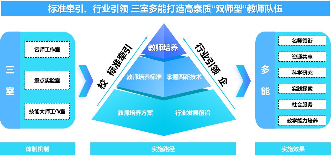 学校机械工程学院对标《关于做好职业教育“双师型”教师认定工作的通知》要求,基于利益平衡理论,创新集名师工作室、技能大师工作室、重点实验室于一体的“三室多能”体制机制;结合化工装备行业特点,通过师资培养,教学改革、数字化赋能教学等方式,培养更多“双师型”教师;结合行业数字化改造,构建科技特派员、服务专精特新企业等多元创新平台,锻造教师的科研与社会服务能力。通过创新体制机制,团队教学水平提高,专业建设能力加强,科教创融汇加深,在国内多所高职院校进行示范推广,取得较好成效。