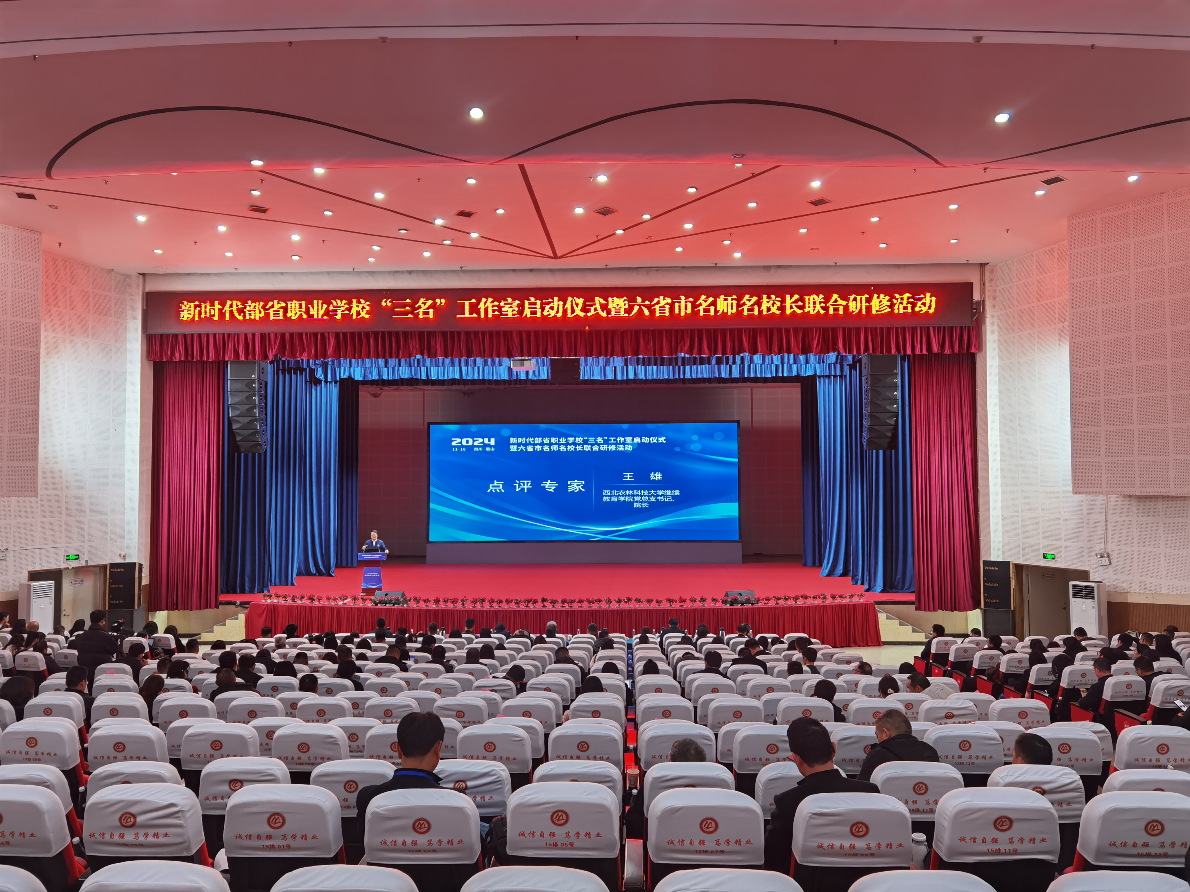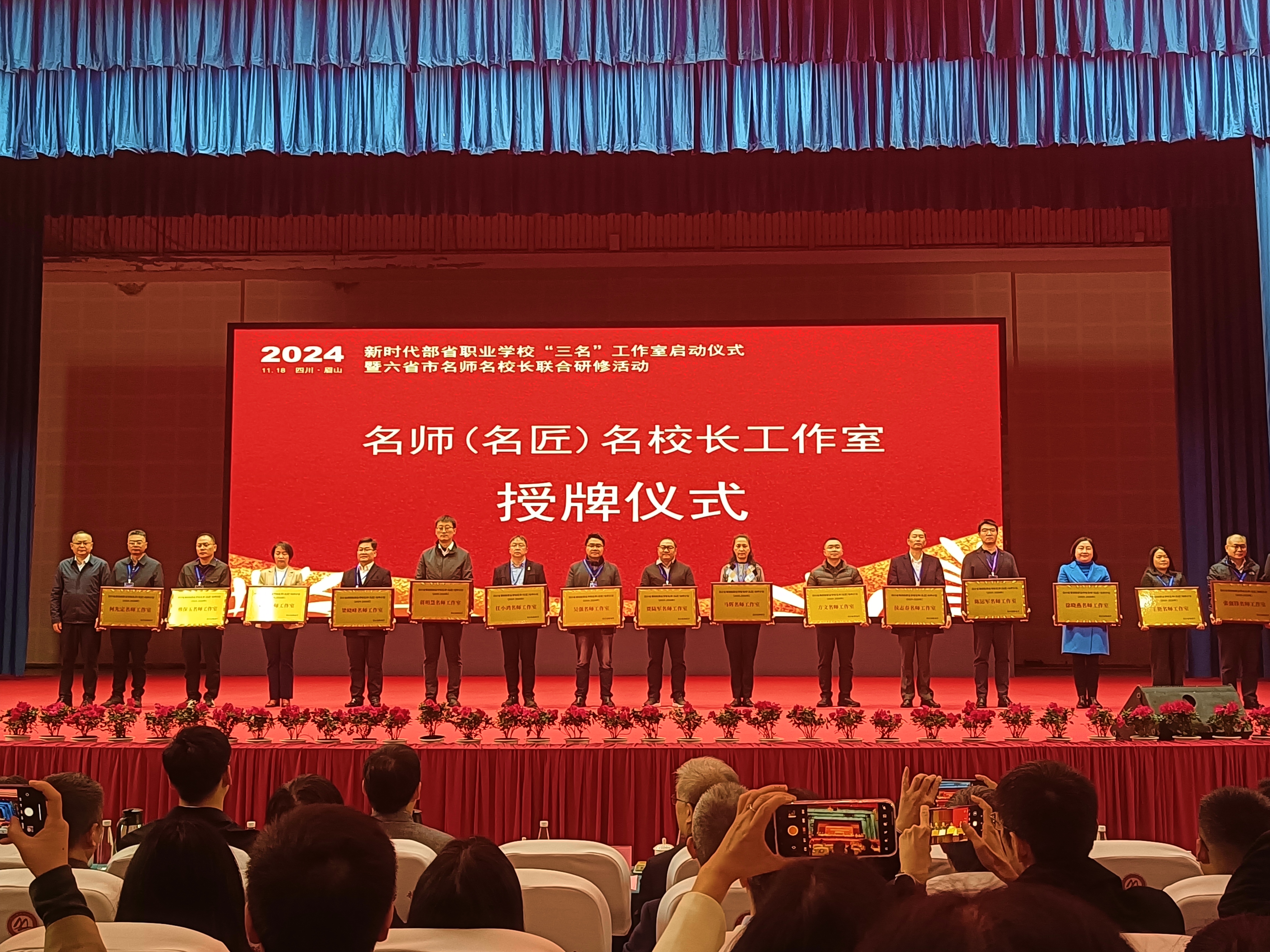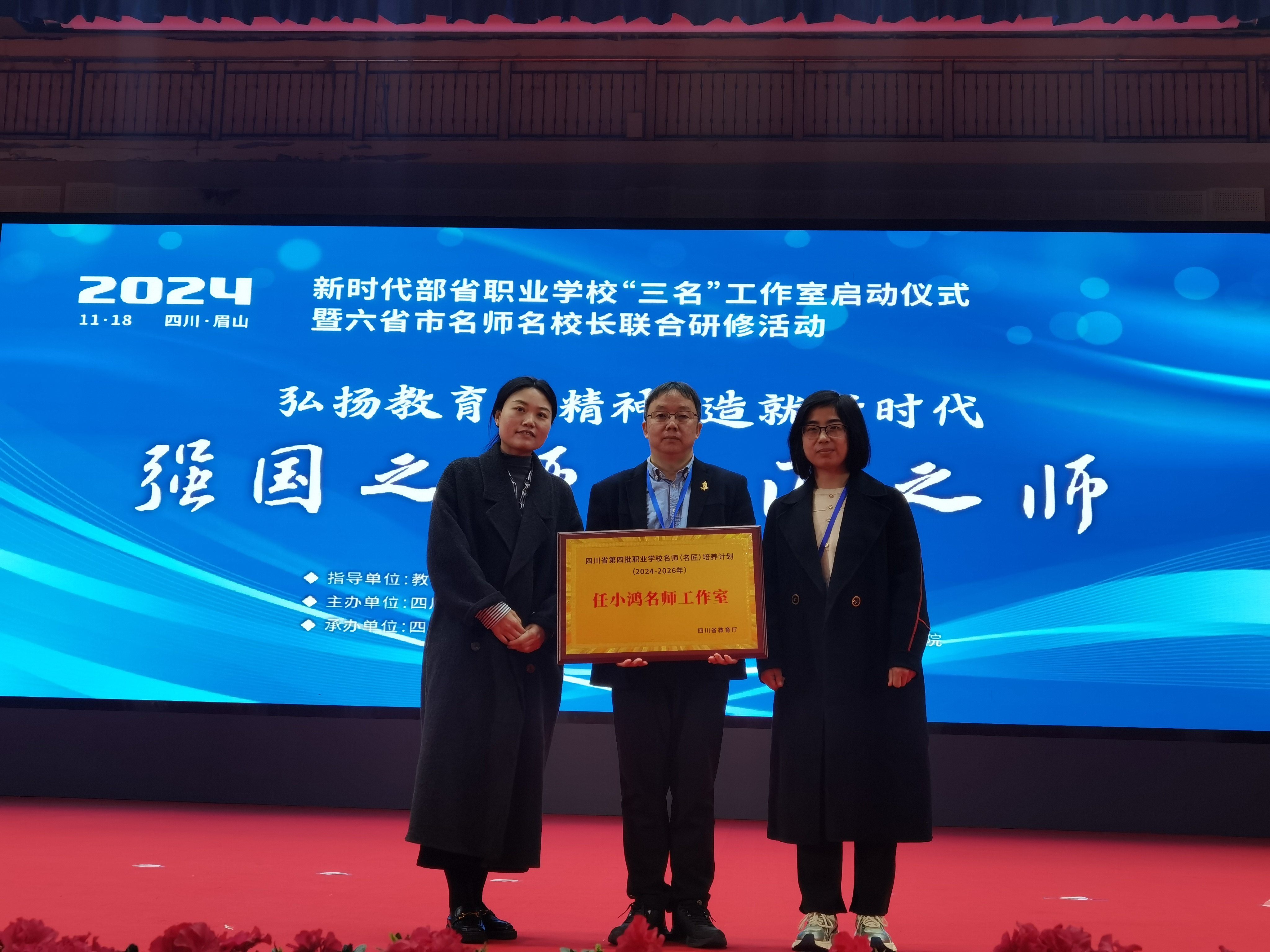 为大力弘扬教育家精神,促进教师专业发展。2024年11月18日,新时代部省职业学校“三名”工作室启动仪式暨六省市名师名校长联合研修活动在四川眉山举行,活动由四川省教师发展中心主任雷云主持,我校机械工程学院任小鸿教授被授予省级名师工作室牌匾。