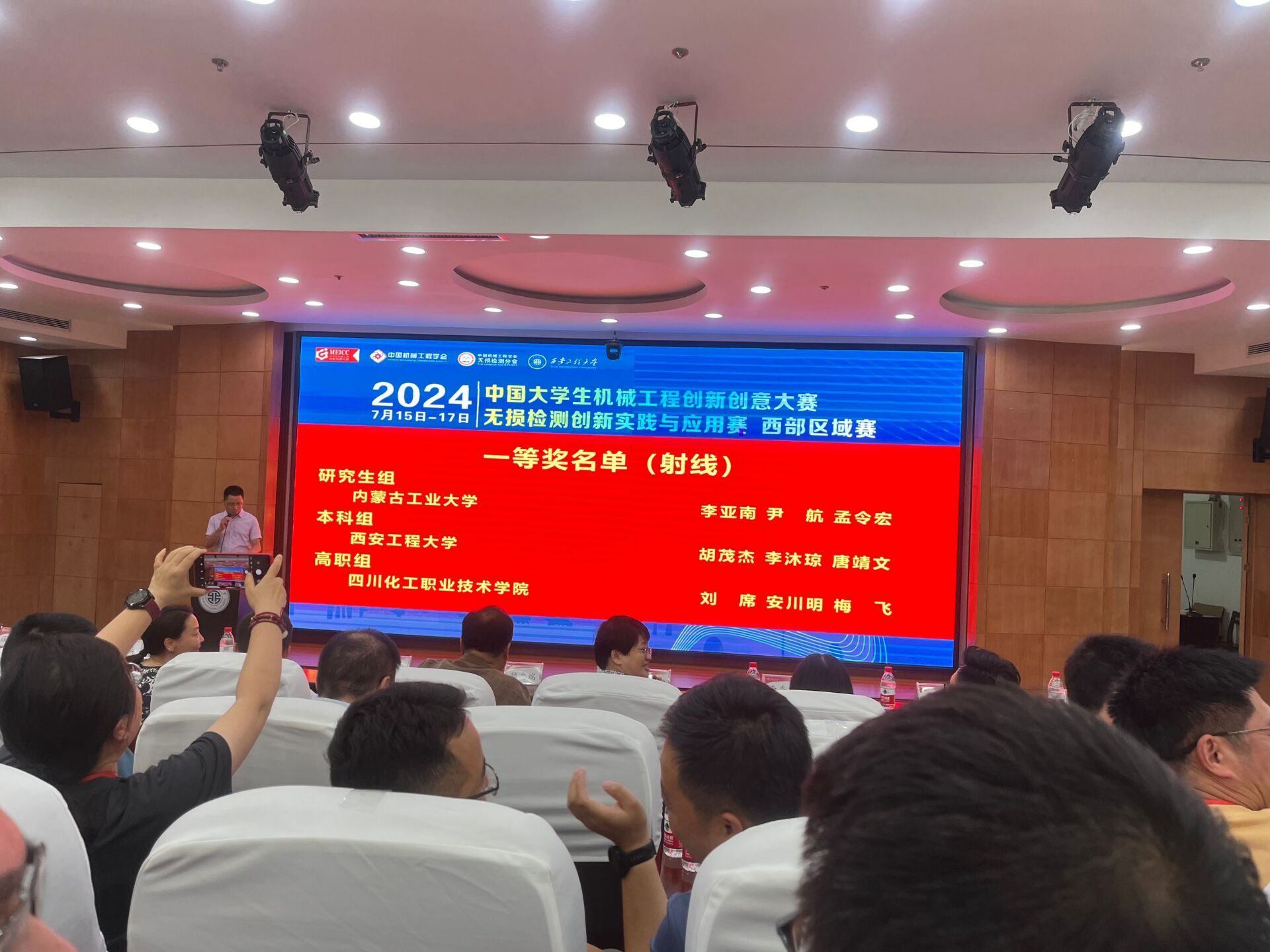 7月15—17日,2024年中国大学生机械工程创新创意大赛无损检测创新实践与应用赛(西部区域赛)在西安工程大学举行。有来自西部区域的贵州大学、兰州理工大学、四川工程职业技术大学、兰州石化职业技术大学等20所院校共计219位学生选手参赛,经过激烈角逐,我院由工业产品质量检测技术专业刘海、陈星红老师指导的检测2232班刘席、检测2331班安川明、检测2332班梅飞获得射线检测项目高职组第一名,并获得一等奖。