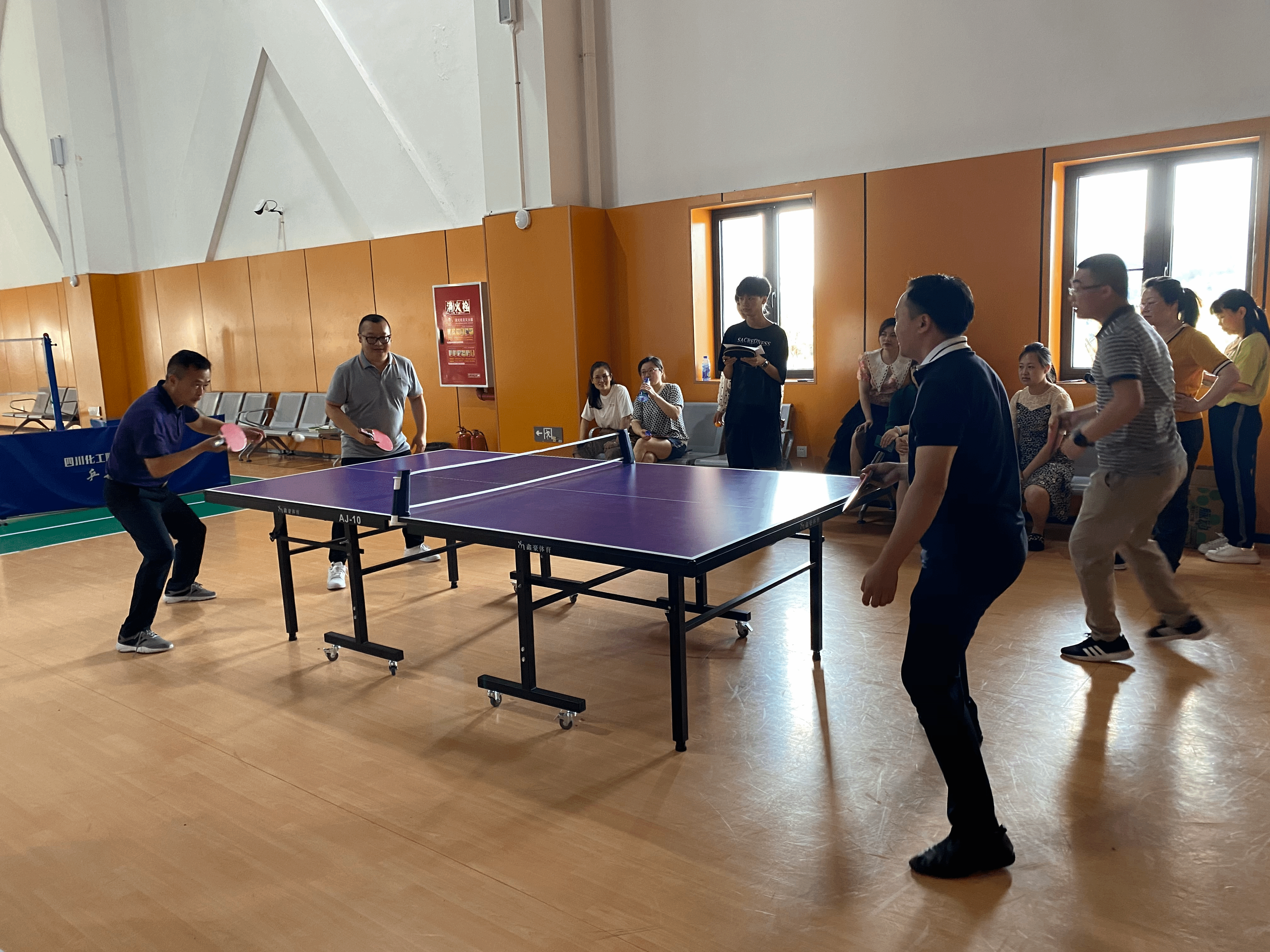 5月13日,四川化工职业技术学院工会组织的乒乓球比赛圆满结束,我院乒乓球队和各方选手同台竞技,共创辉煌。比赛过程精彩纷呈,跌宕起伏,球员之间你推我挡,你搓我拉,互为对攻,获得场下观众阵阵喝彩声。双方发球变化多端,上下旋结合,发球落点刁钻,一个个巧妙的防守与绝杀让比赛高潮迭起,为场下观众带来了一场视觉盛宴,经过不懈的拼搏和持续的努力,我院乒乓球队突破重围、力克群雄,最终摘得本届乒乓球团体比赛的桂冠。