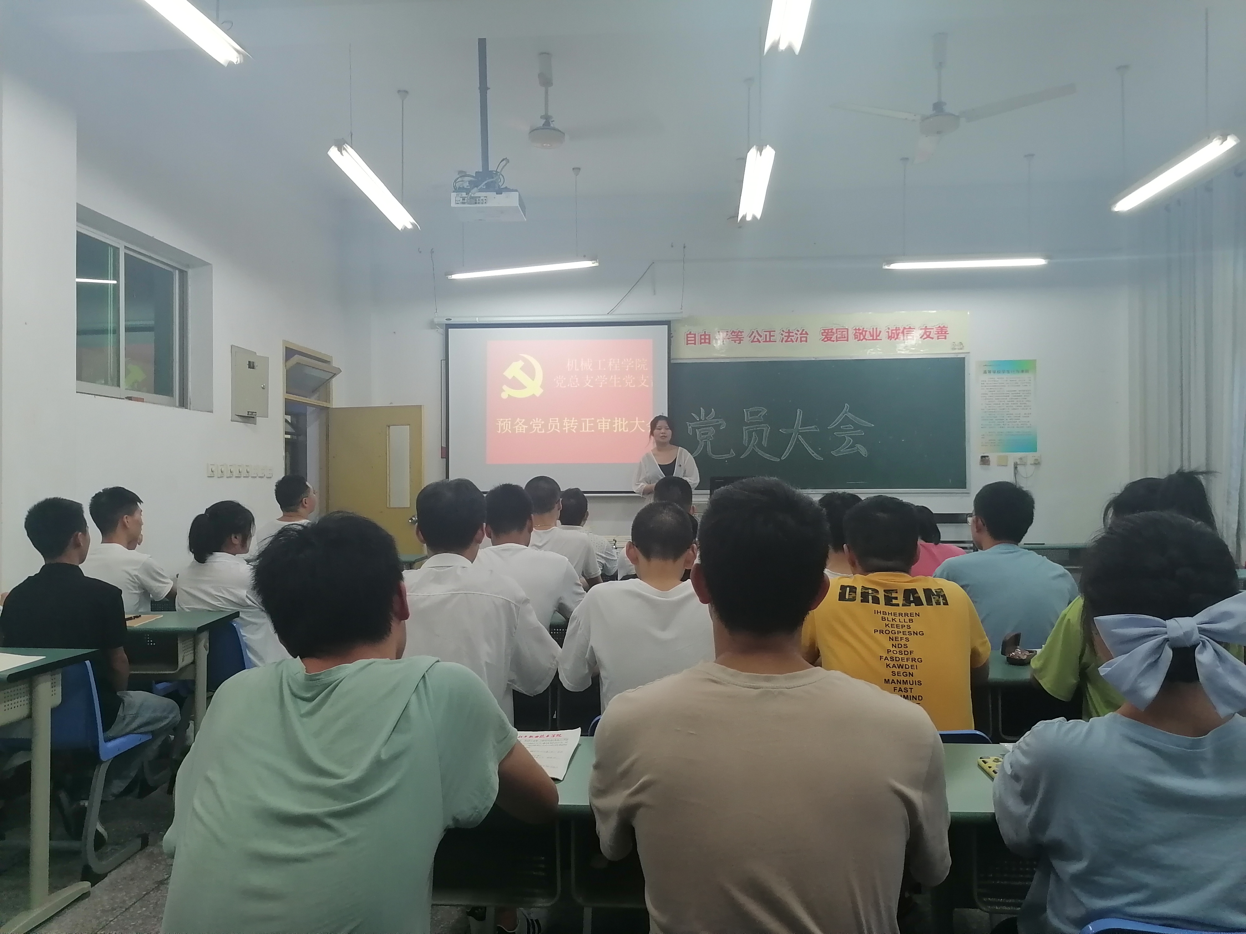 2021年6月21日晚,机械工程学院党总支学生党支部在综A404召开党员大会,讨论吸收中共预备党员和预备党员转正问题。会议由党支部书记张良勇主持,预备党员、发展对象和全体正式党员参加了会议。