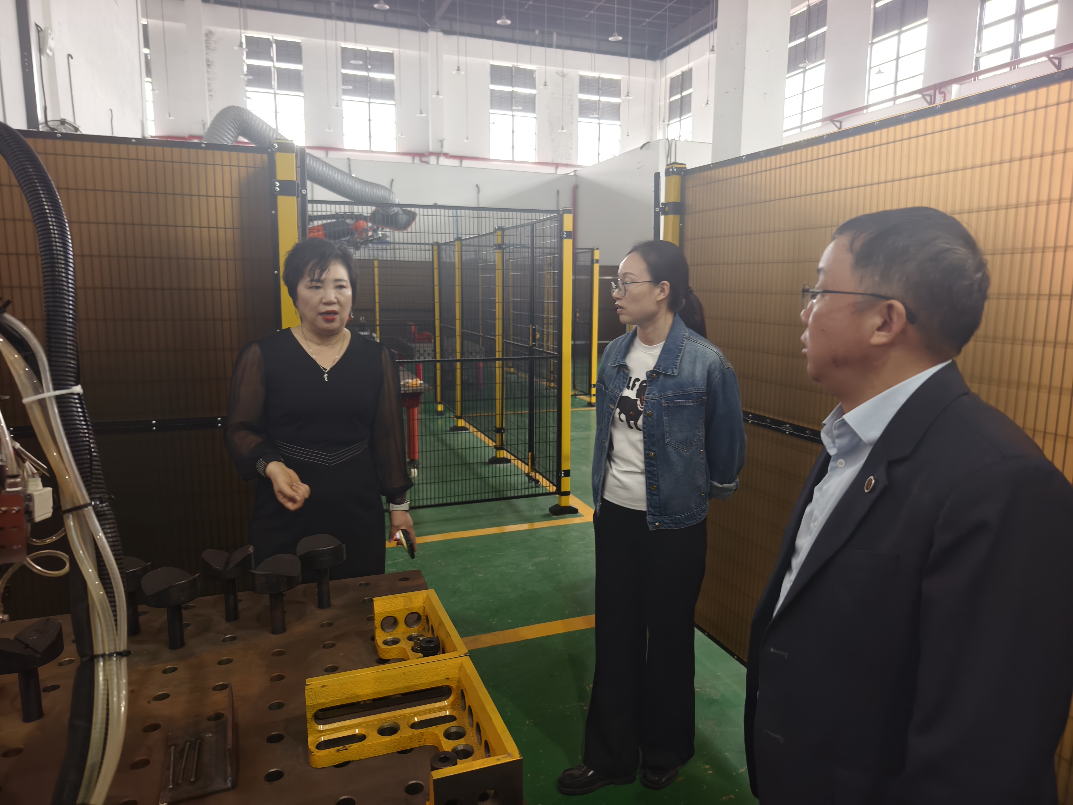 在讲座开始前,胡芳芳董事长在机械工程学院任小鸿院长和陈玲副院长的陪同下,实地参观了学院的三维扫描、3D打印、超声波检测及焊接机器人等实训室,对学院在智能制造领域的教学设施和实践条件给予了高度评价。