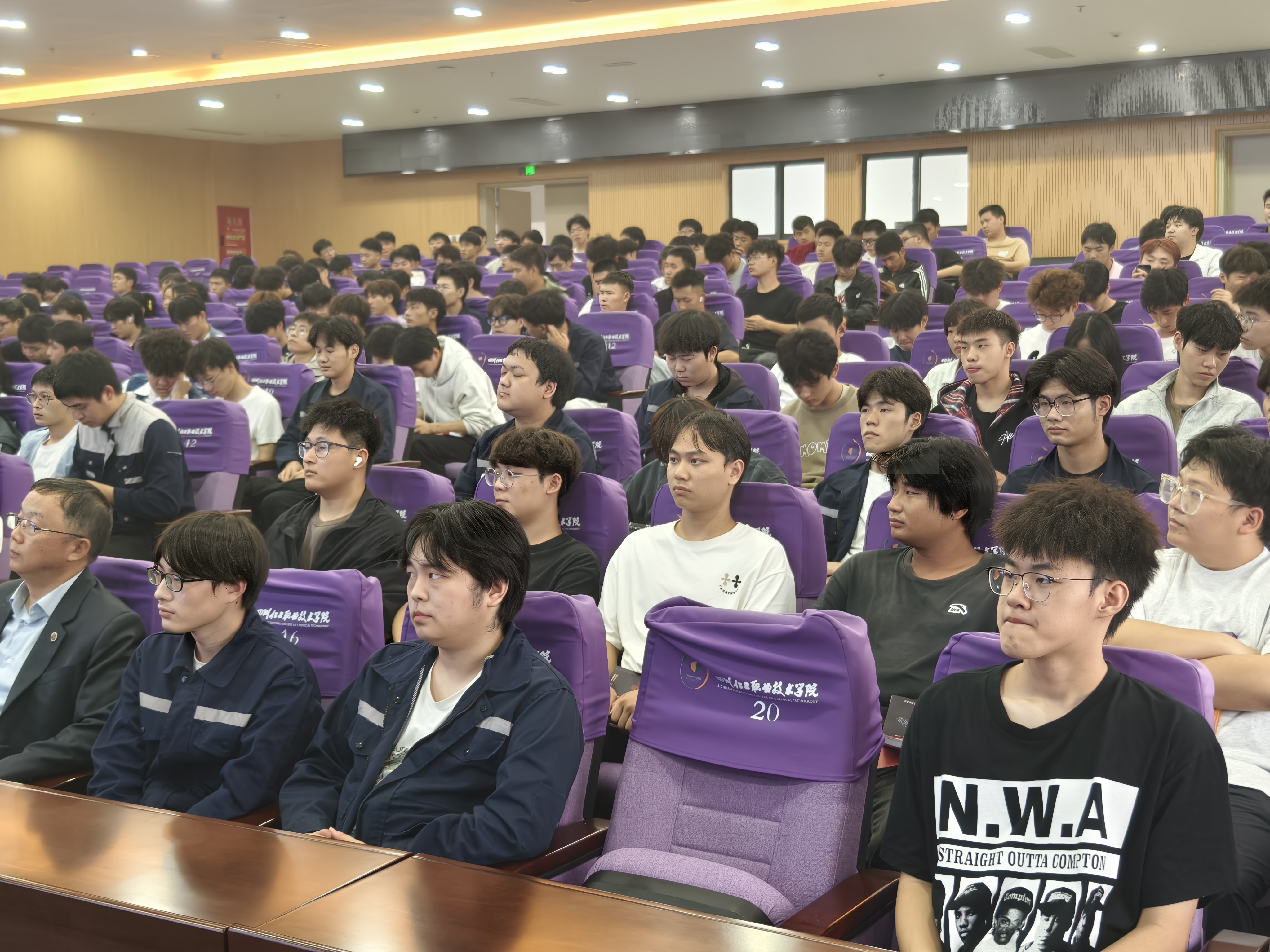 2025年10月17日下午,泸州众大科技集团有限公司董事长胡芳芳女士受邀来到四川化工职业技术学院,为焊接、检测和机制专业毕业班学生带来了一场题为《数智赋能机械工业,重塑发展新格局——高职院校学生就业实践及应对策略》的专题讲座。