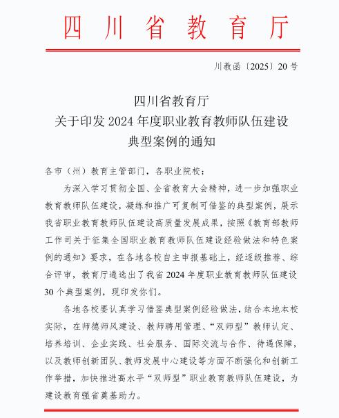 我校案例入选四川省2024年度职业教育教师队伍建设典型案例